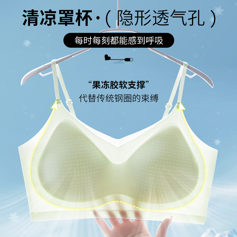 새로운 얇은 보이지 않는 조끼 스타일 속옷, 매끄럽고 통기성이 뛰어난 고정 컵 브라, 아이스 실크 쿨링 림리스 브라