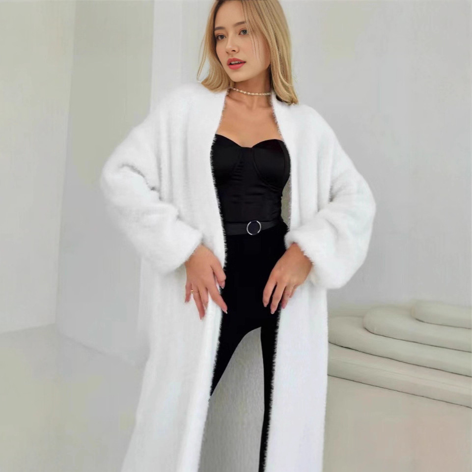유럽과 미국 스타일의 크로스보더 펀칭 니트 중간 길이 아우터, 봄 여름용 얇은 가디건, 루즈핏 비치 V넥 코트, 여성용 상의