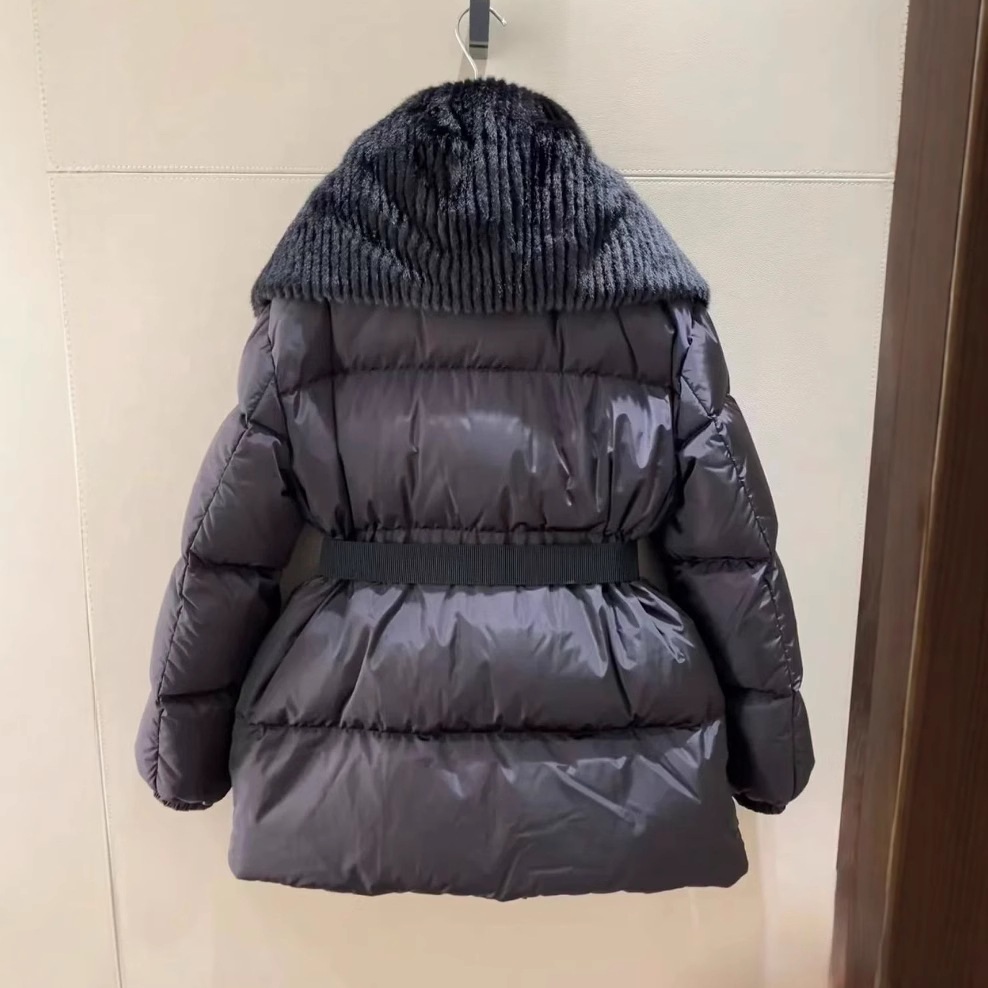 "포이즌 재고" 수정 판 M 개미 허리 플립 울 칼라 벨트 여성용 쇼트 다운 재킷
