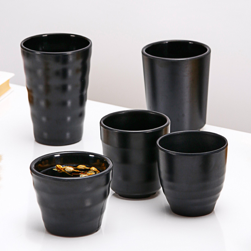 모조 도자기 검은 일본 컵 상업 레스토랑 핫 냄비 바베큐 가게 물 컵 명사 티 컵 플라스틱 컵 멜라민 식기