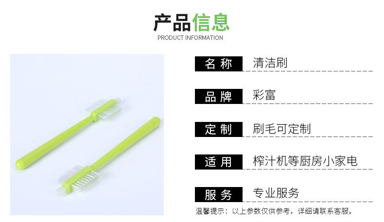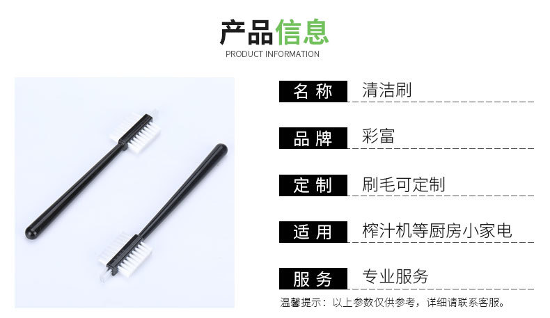 彩富电器位于广东中山,覆盖珠三角地区,成立于2013年,长期以往生产豆浆机,破壁机,榨汁机,原汁机,净水器等各类清洁刷,款式高达几十种,市面上各大豆浆机,破壁机,榨汁机品牌采购我们毛刷,且支持定制,支持毛刷打样加工,加工电动刷头,扫地机器人刷头等, 本公司拥有10多台注塑机,40多台高速植毛机,满足开模,打样,加工等一些列要求。期待与您的合作!
