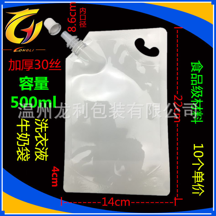 乳白自立吸嘴袋500毫升 单价:0.55元/个