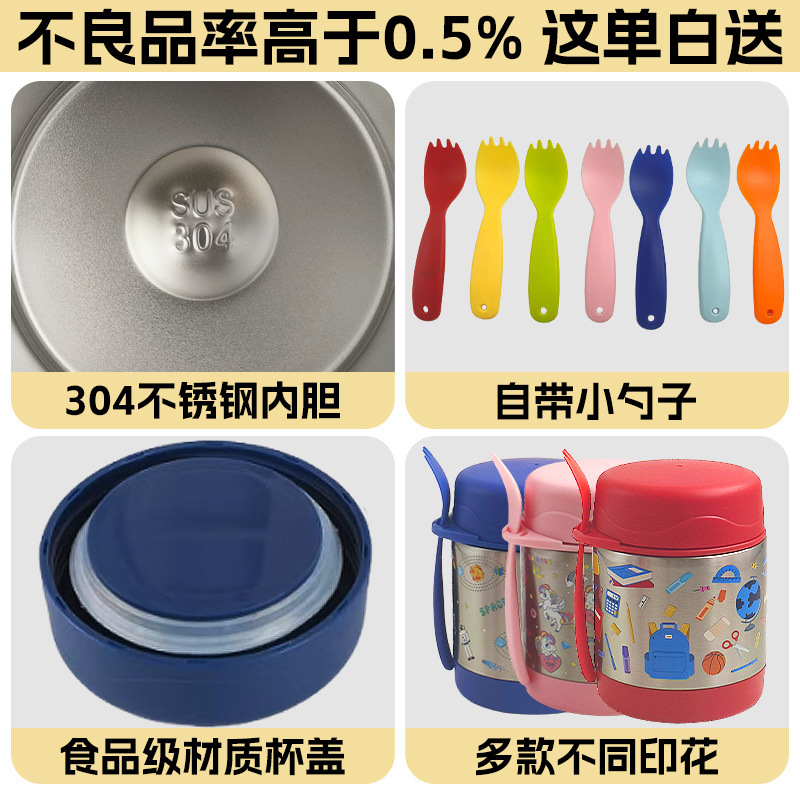 국경을 넘는 스테인리스 진공 보온병 어린이 도시락 보온병 포크 포함 도매 만화