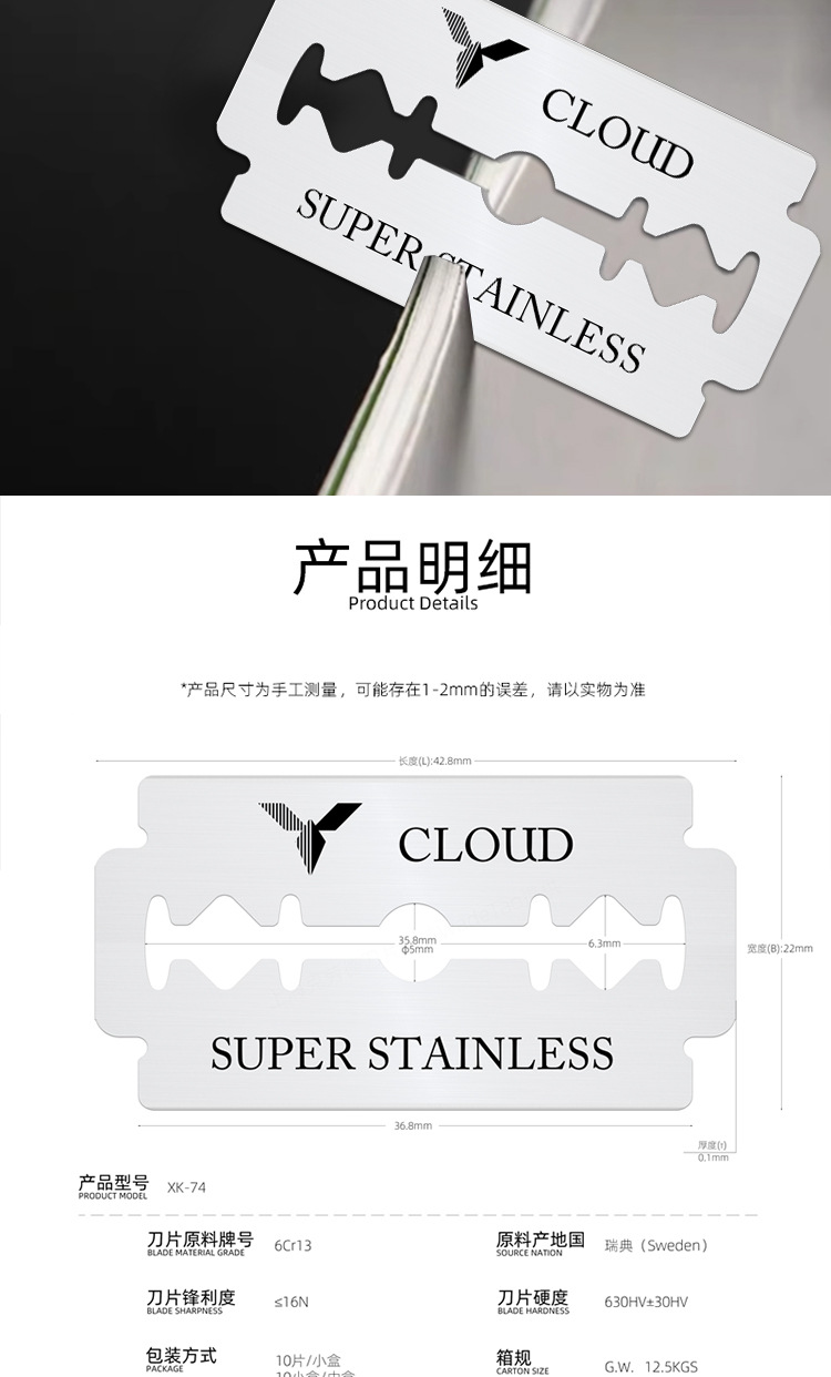 클로드 면도날 구식 양면 면도 블레이드 이발 스웨덴 10 양날 74 블레이드