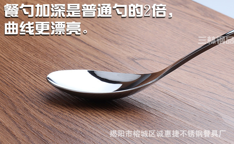 揭阳市诚惠捷餐具厂专业批发和加工各类不锈钢餐具、厨具、家居日用品等等.公司拥有一批从事研究,开发,设计,制造的技术人才,产品设计新颖,品质时尚,品种繁多,配套齐全.主要生产加工各种中、高档不锈钢餐具,厨具,广销国内外.