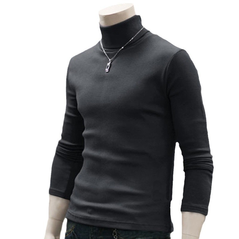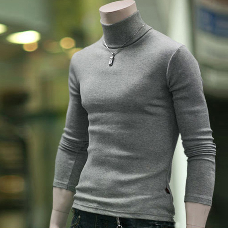 남성용 긴팔 티셔츠 솔리드 컬러 하이 칼라 티셔츠 한국 슬림핏 남성용 2015 가을 겨울 새 베이스 셔츠