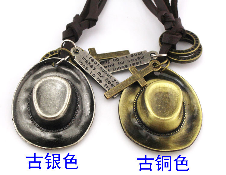 产品说明:【双环】外贸欧美热销复古风个性非主流真皮情侣绳项链。