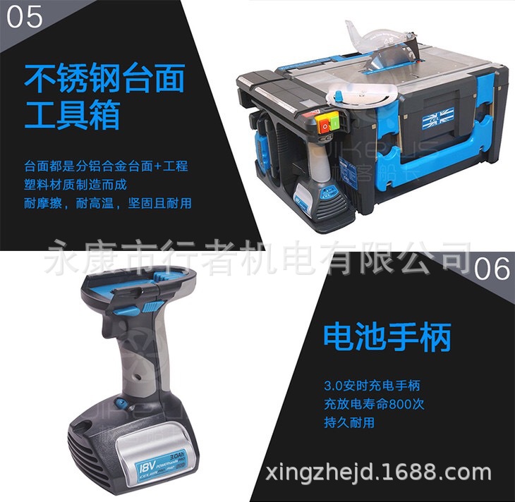 WS4E是全球第一台电动手提台式组合工具,同时也是目前魄力8系列中最高端的产品。它采用台面,3.0安时锂电池充电手柄,持久耐用,其中电圆锯采用800瓦特的日本进口电机配备4个碳刷,刀片升级到165毫米19T,大大增强了切割的强度和速度。专业且坚固耐用