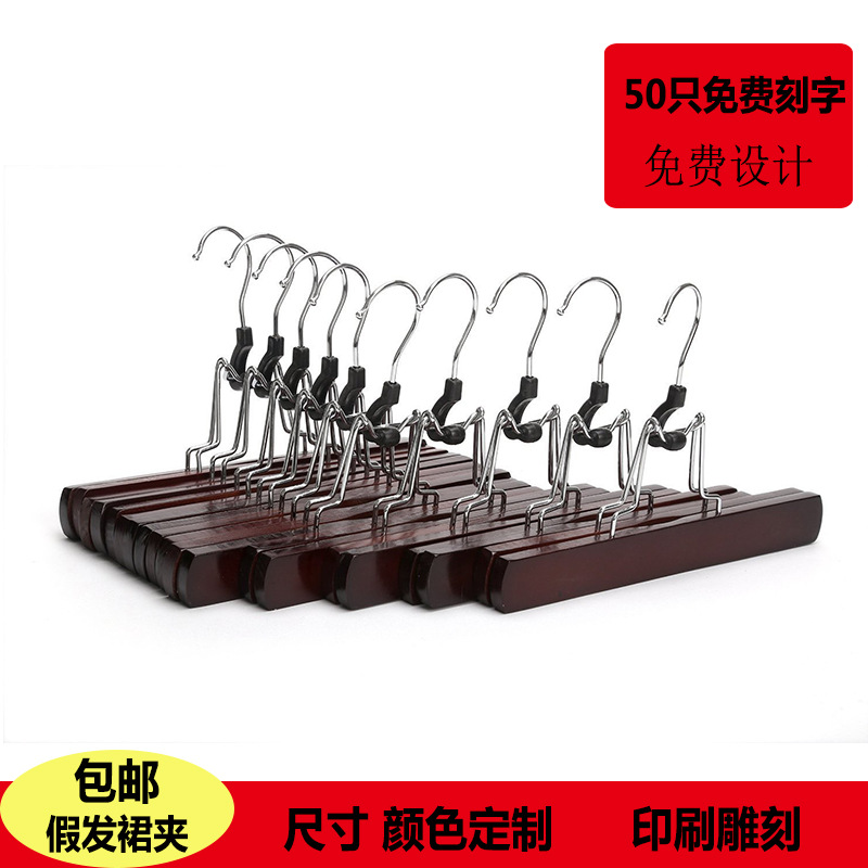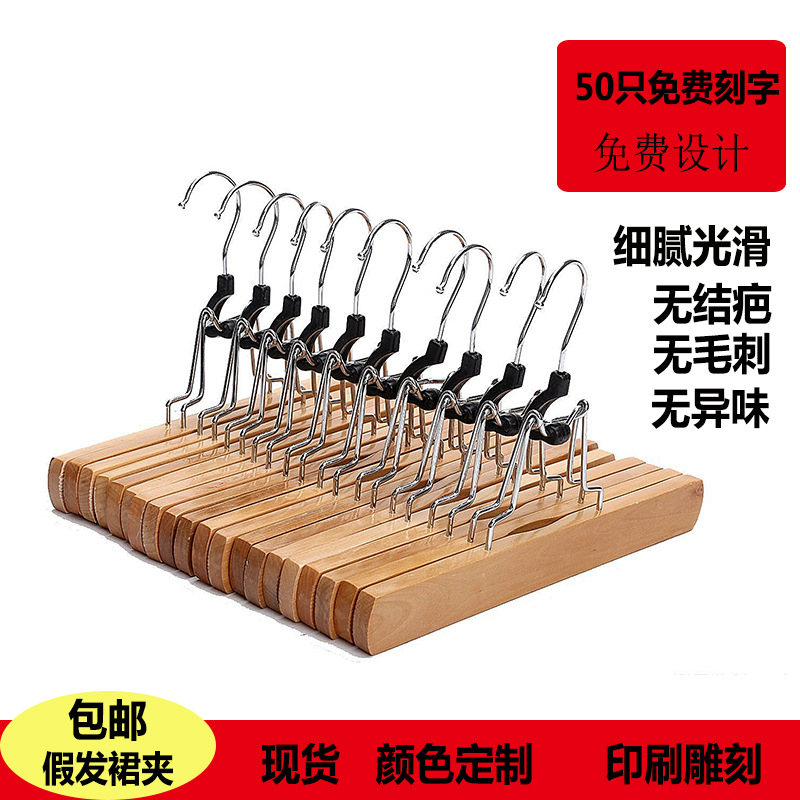공장 직공급 접이식 가발 클립 핑크 원활한 나무 치마 클립 미끄럼 방지 단단한 나무 옷 랙 도매 우송료