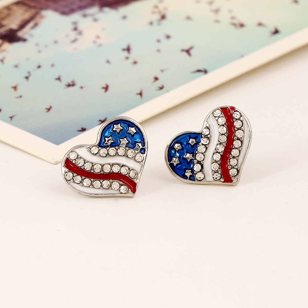 产品名称:E441欧美饰品批发厂家 时尚美国国旗耳钉 五角星桃心水钻耳钉耳环