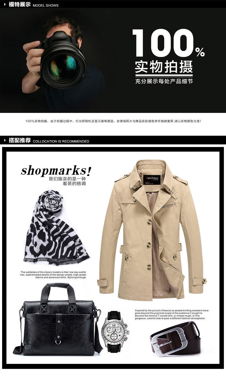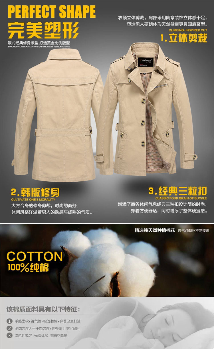 비즈니스 봄과 가을 트렌치 코트 남성용 중간 길이 캐주얼 재킷 코트 청소년 순면 패션 한국식 플러스 사이즈 남성복