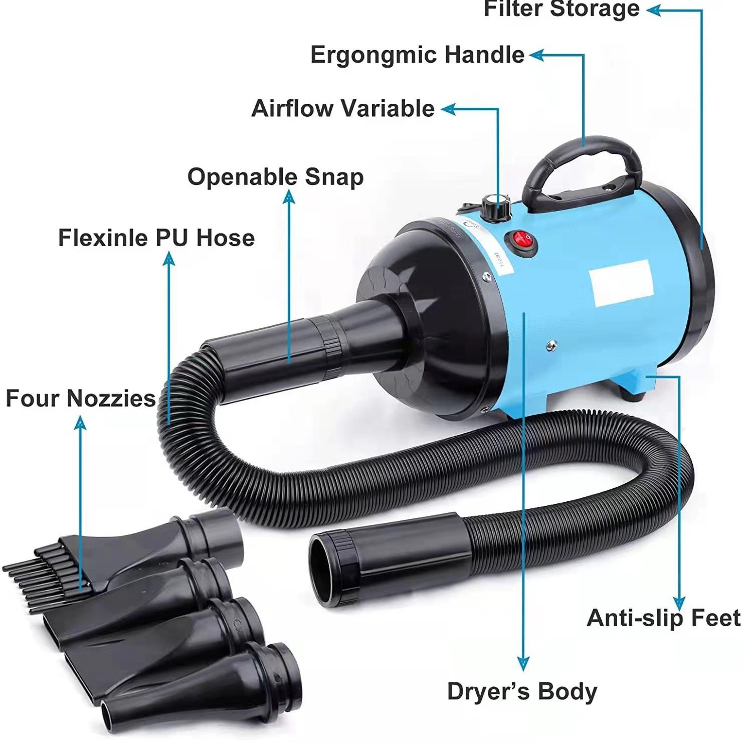1.双航单马达宠物吹水机通过鼓凤总成。加热总成等方式.,降低了噪音, 提高了工作效率。