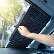 这款用于汽车玻璃的隔热帘适用于各款车型,可帮你的爱车隔离90%以上的阳光;安装非常快捷,只要你停车时轻轻拉起拉环扣在吸盘上即可,两秒时间,清凉一夏!还有自动收卷功能,不伤车体,美观实用,价格便宜,是你夏天驾车出门必不可少的用品!