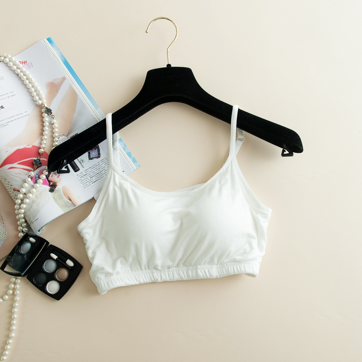 带胸垫可调节圆领小吊带