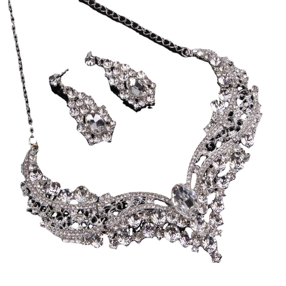 产品名称:新娘合金镶钻大水晶项链耳环套装8808