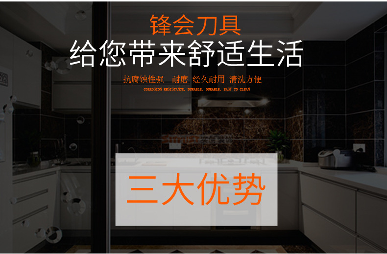 阳江锋会,始于2003年广州长江五金百货批发市场的一间批发档口,发展为现今根值阳江 集生产、销售和开发新产品共进的创新企业。立意会聚阳江五金刀剪业内较好,专业出品性价比高的刀剪厨具产品为公司导向,以务实的经营理念擦亮“锋会”这个自有品牌。 以客户至上的原则服务于广大客户经销商朋友。诚邀你光临本厂或寄样品鉴,手感舒适、做工精美 真的精美!上市至今一直畅销,一直现货候驾,欢迎全国各地一手代理。