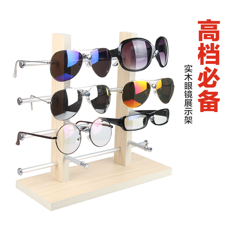 이중 행 단단한 나무 안경 디스플레이 스탠드 선글라스 디스플레이 소품 오크 선글라스 디스플레이 보관 브래킷