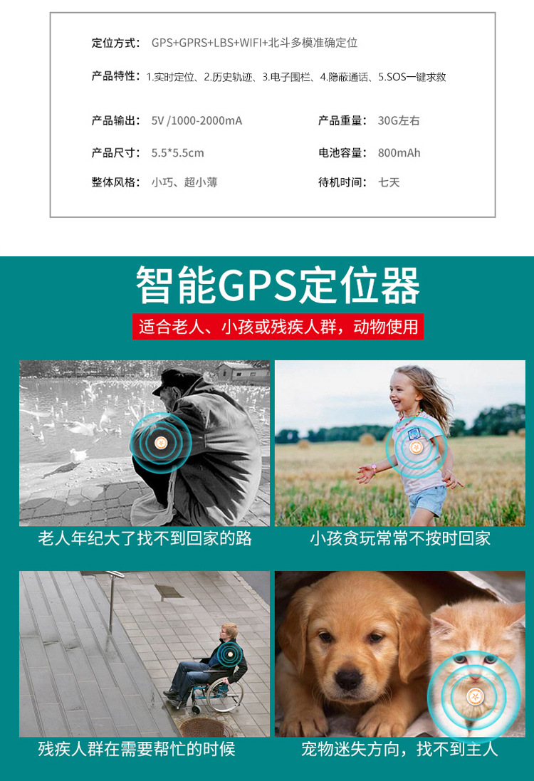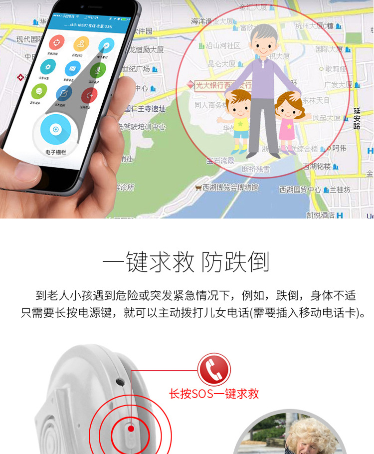Gps BeiDou 노인 어린이 위치 추적기 baokangyuan GPS 분실 방지 전화 폭동 버튼 배지 추적기