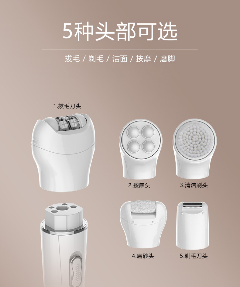 KD-199五合一脱毛器套装(包含:洗脸器 按摩器 拔毛器 剃毛器 磨脚器)