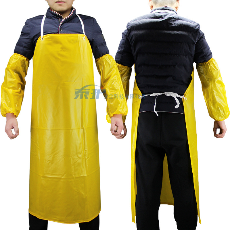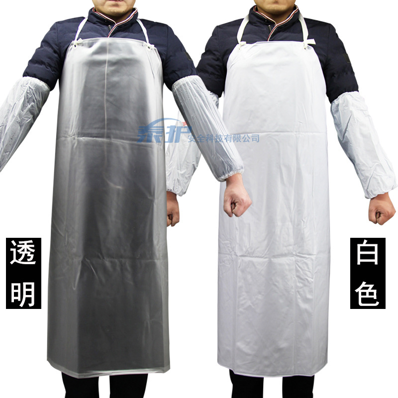 【产品优点】:选用PVC材质加工处理制作,具有良好的防水耐油、耐轻微酸碱、耐低温、柔韧性好等特点;穿孔处PVC鸡眼设计、更牢固,另配绑带可灵活调节长短,加厚耐磨耐用,大面围裙可以更好的防护