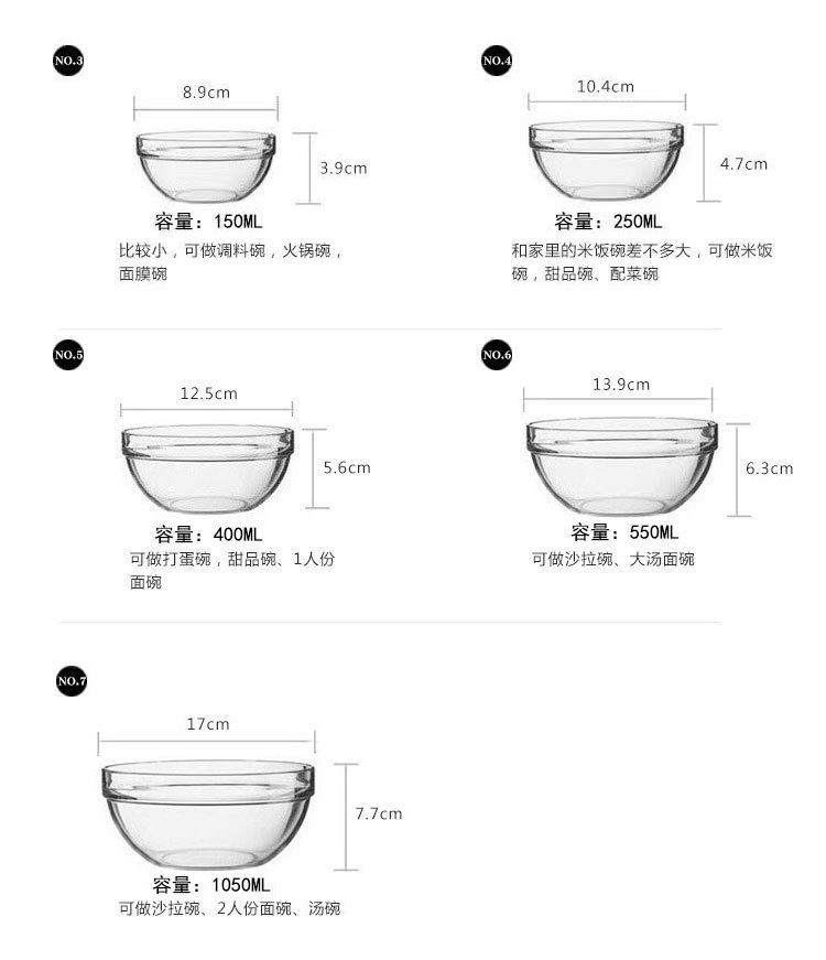 뚜껑이있는 유리 그릇 신선한 그릇 다섯 조각 세트 샐러드 그릇 인스턴트 국수 그릇 창조적 인 둥근 투명 유리 그릇 공장 도매