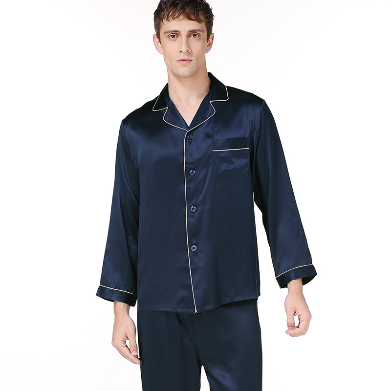 도매 봄과 여름 남성 실크 잠옷 2 피스 세트 긴 소매 심플 100 누에 실크 가정 의류 T9002