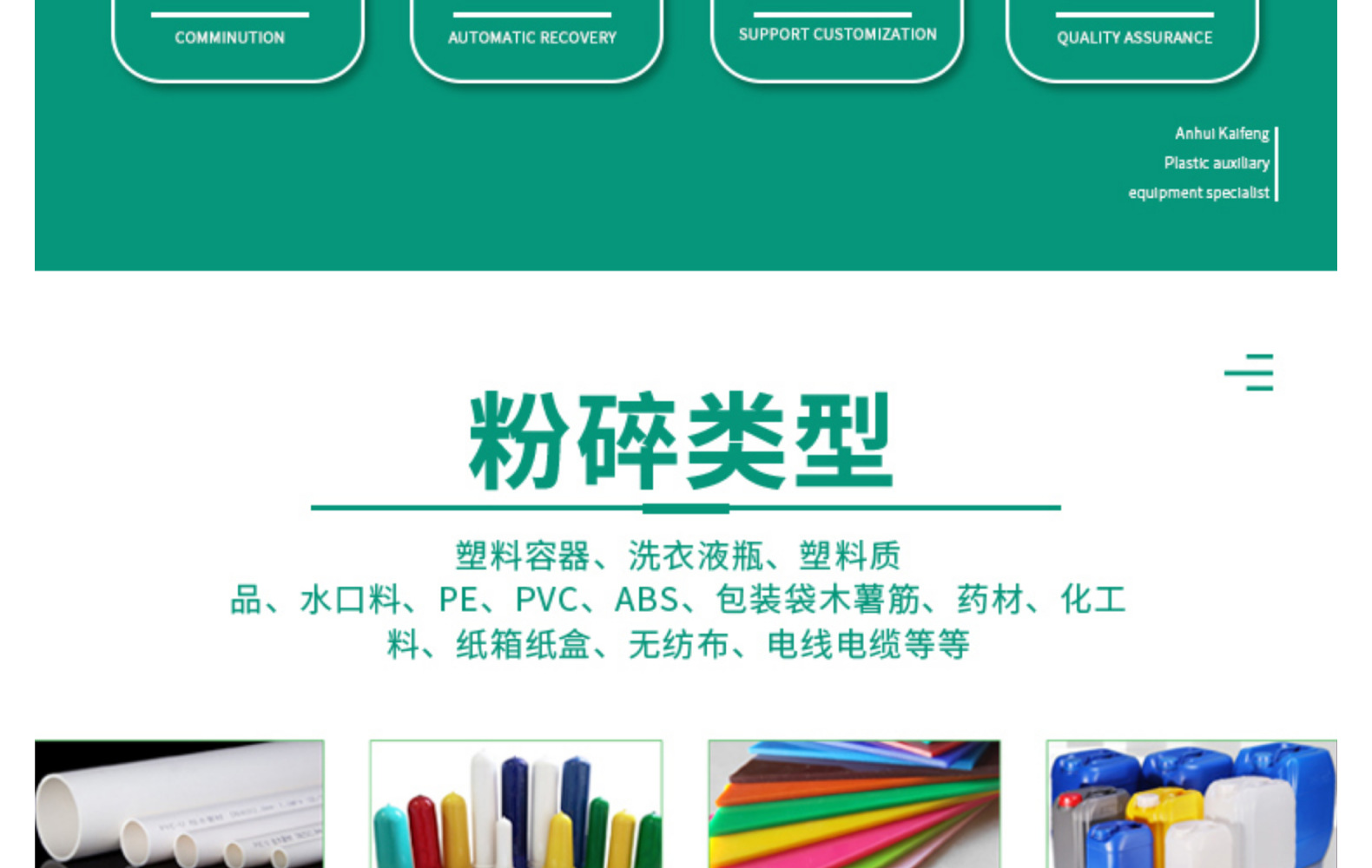 카이펑 플라스틱 분쇄기, 폐통, 병, 상자 등을 강력하게 분쇄하는 효율적이고 친환경적인 분쇄 장비, 완전 자동화