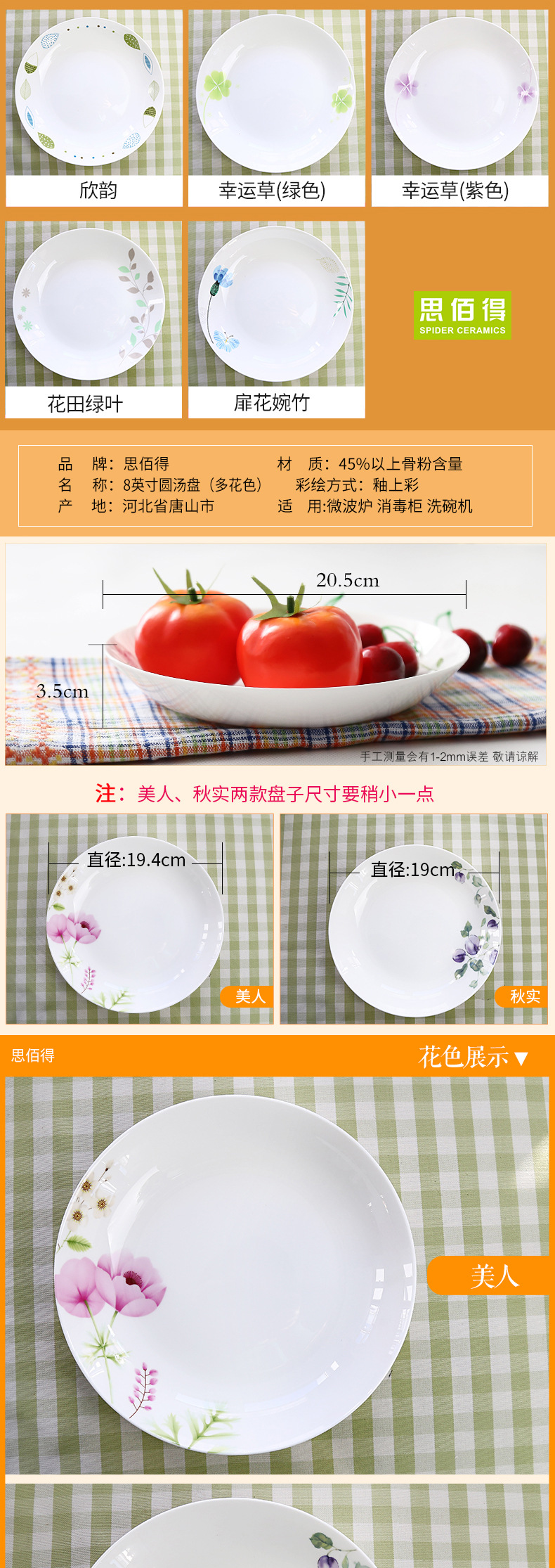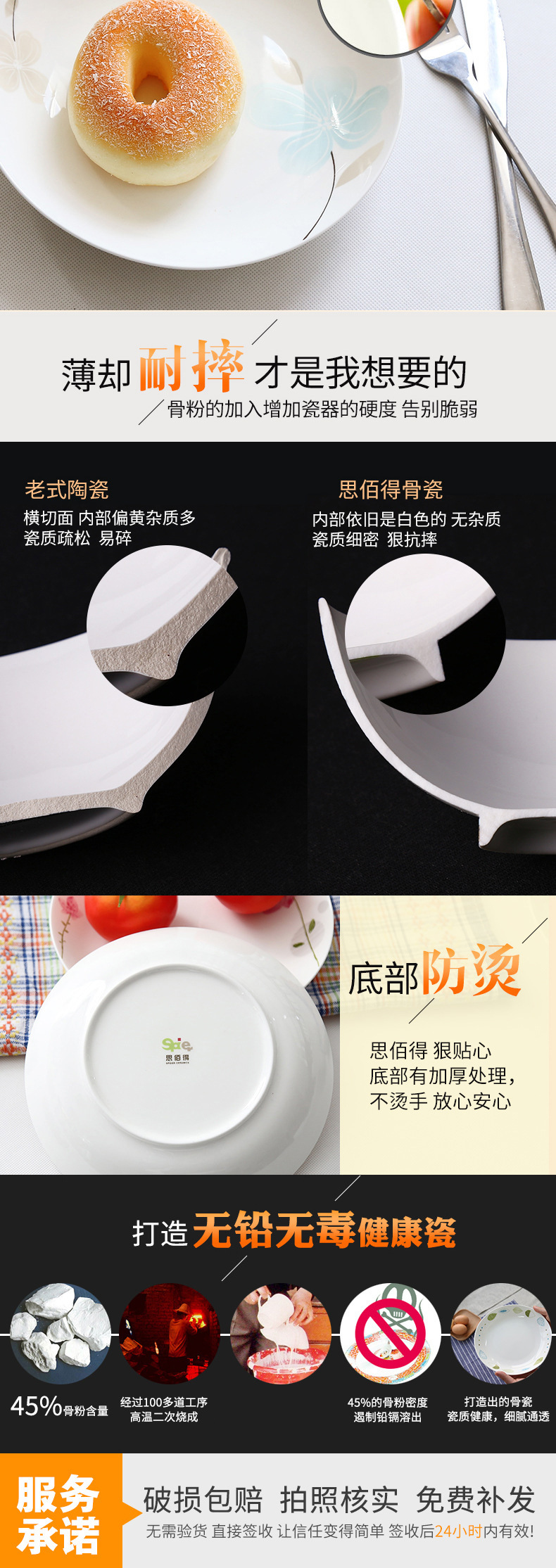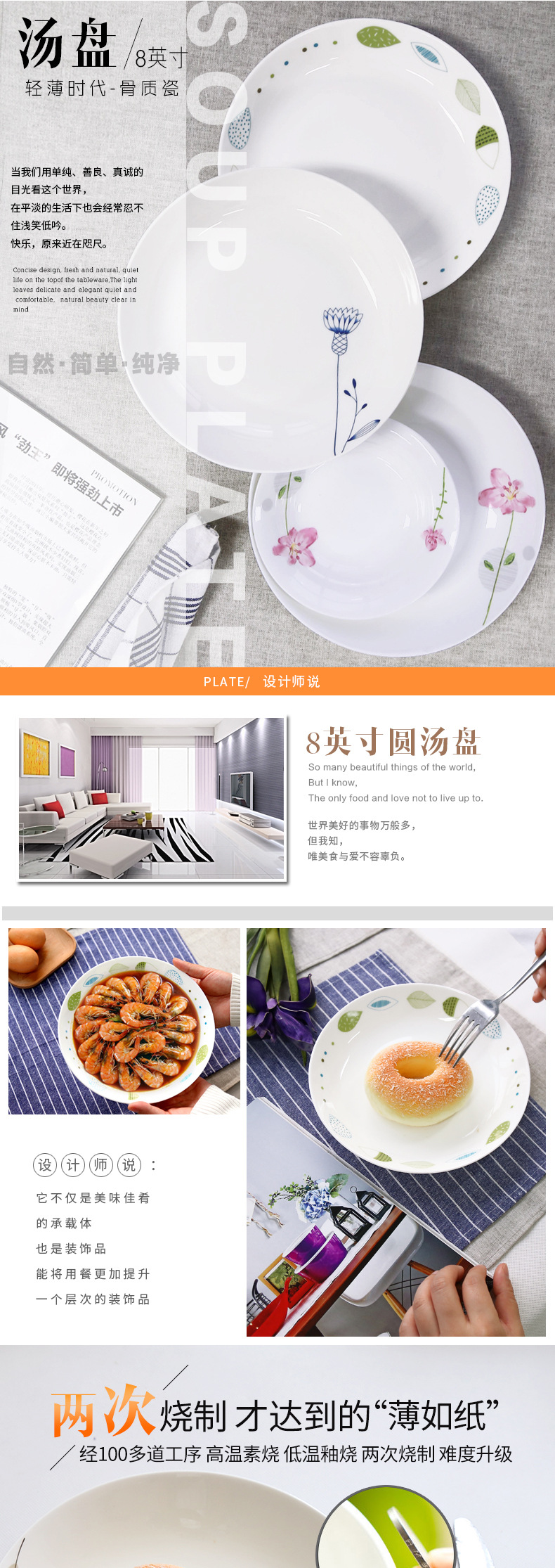 크리에이 티브 본 차이나 식기 접시 한국식 원형 수프 접시 8 인치 쌀 접시 크리에이 티브 가정용 접시 세라믹 접시