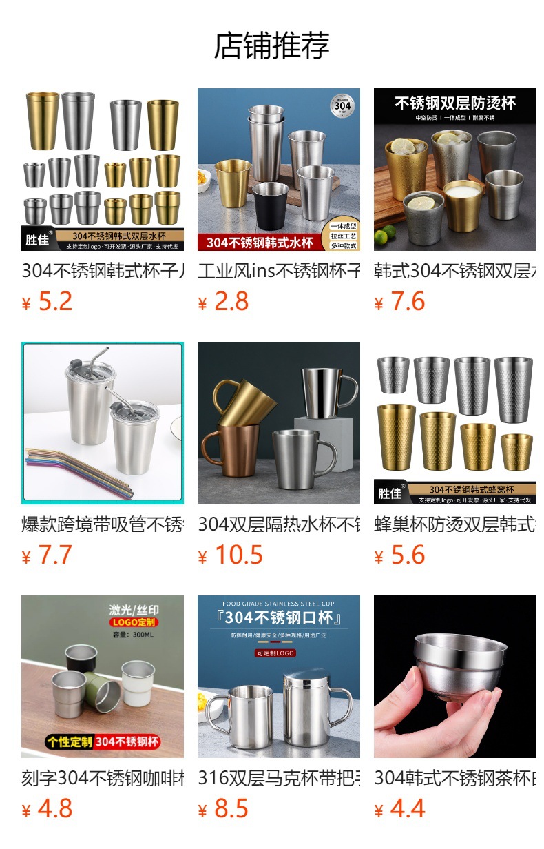 어린이용 이중 방열컵 한국식 금색 맥주컵 머그컵 맥주컵 한국식 식기 304 스테인리스컵