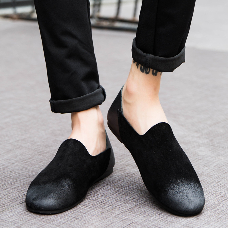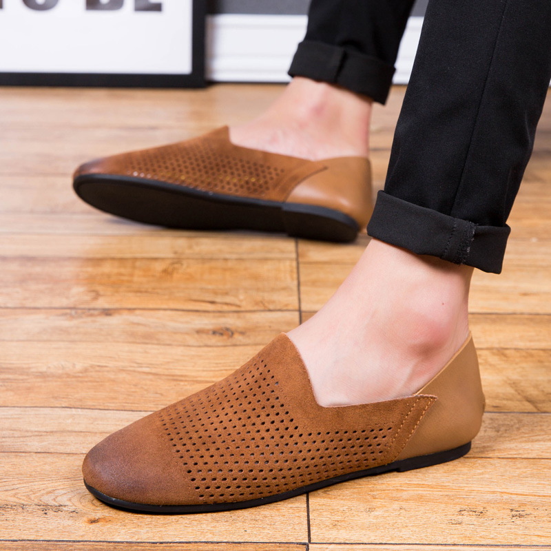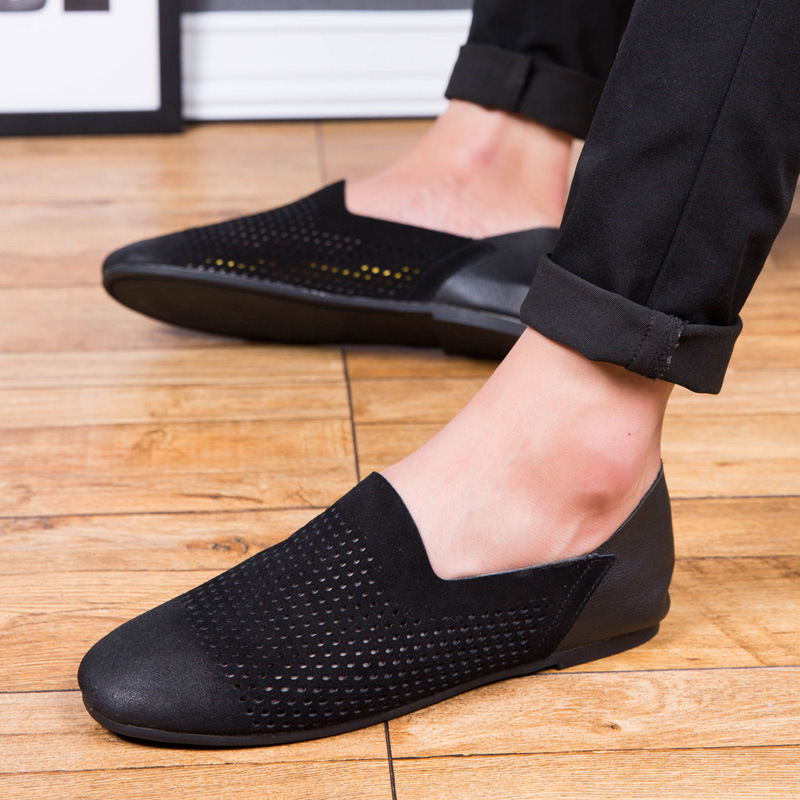 통기성 남성 신발 영국 소형 가죽 신발 트렌드 남성 캐주얼 신발 블랙 운전 게으른 신발 제조 업체 도매