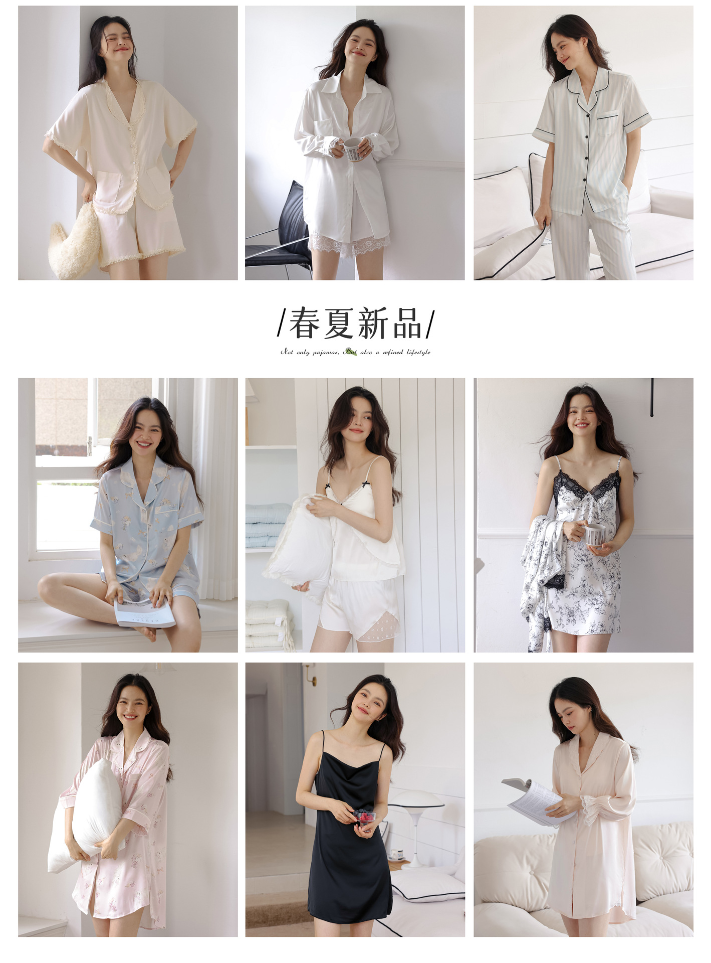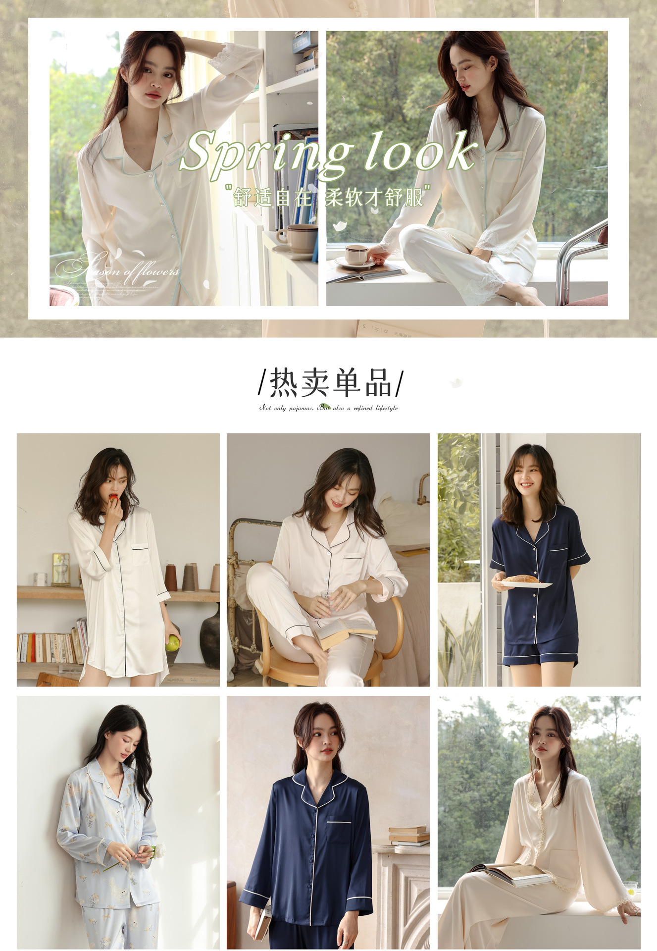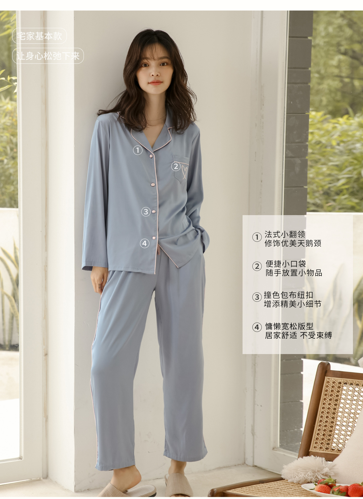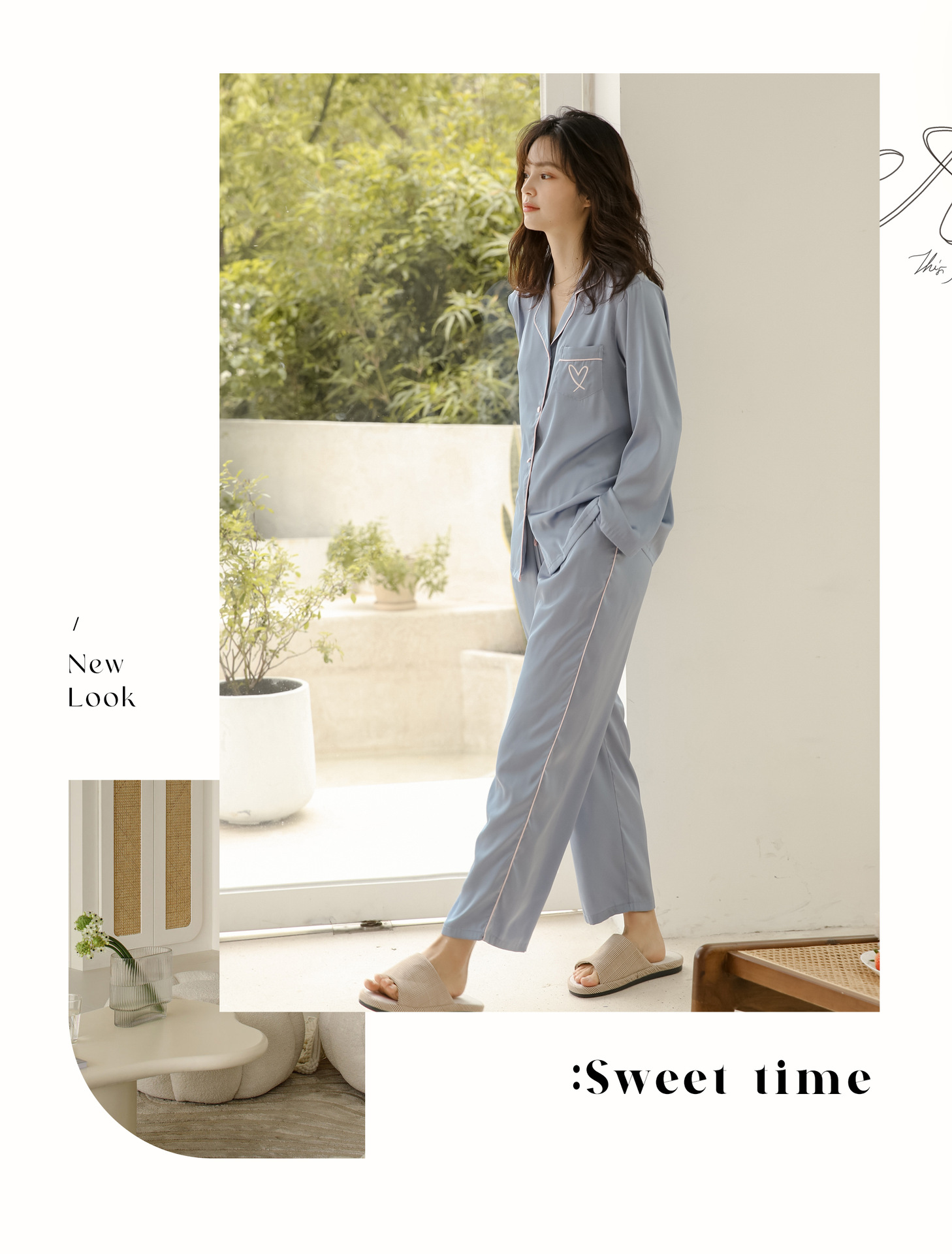 자수 하트 무늬 여성용 얇은 시원한 아이스 실크 긴팔 긴바지 투피스 실크 여성 홈웨어 캐주얼