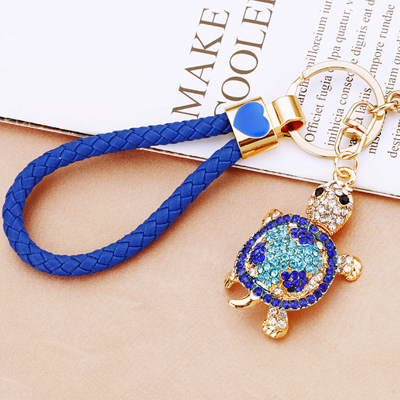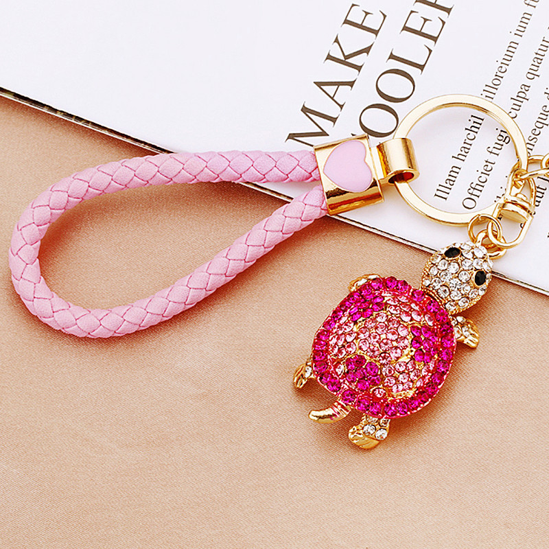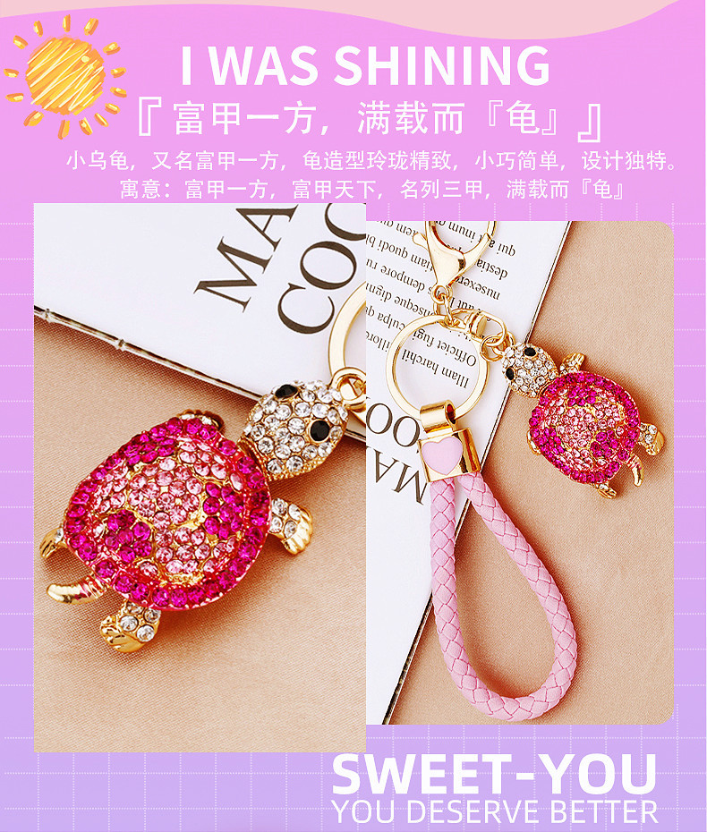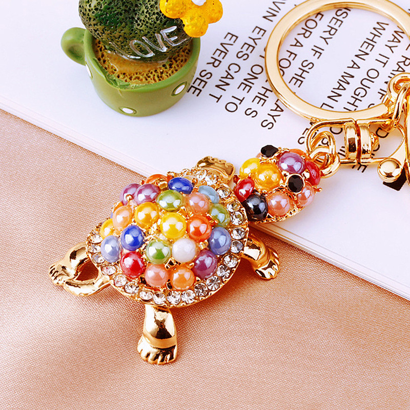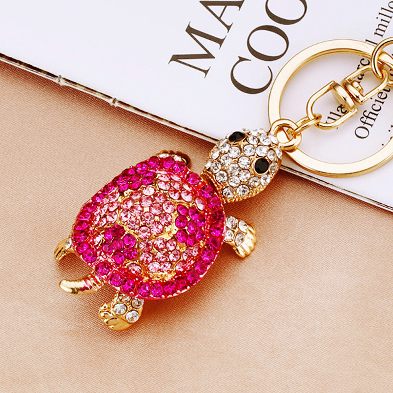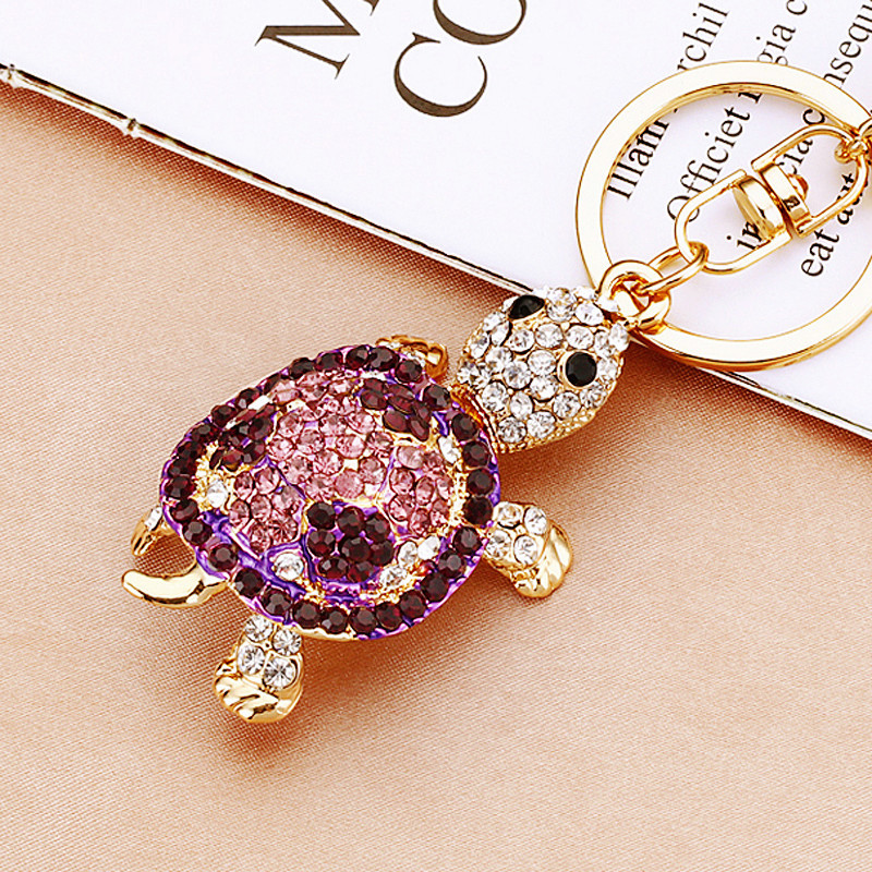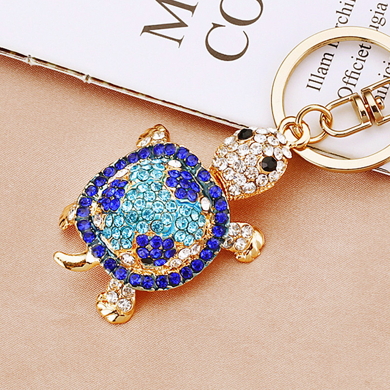 중국식 모조 다이아몬드 행운의 거북이 자동차 열쇠 고리 여성 가방 펜던트 금속 열쇠 고리 비즈니스 선물 도매