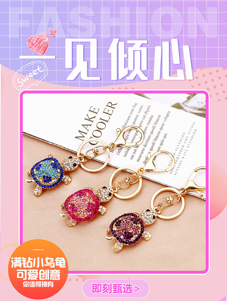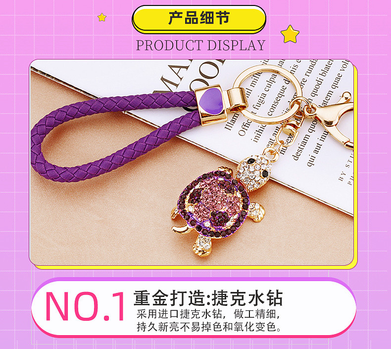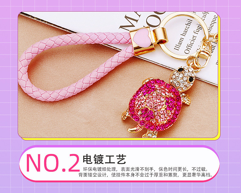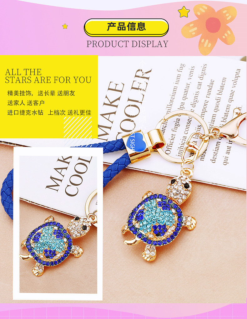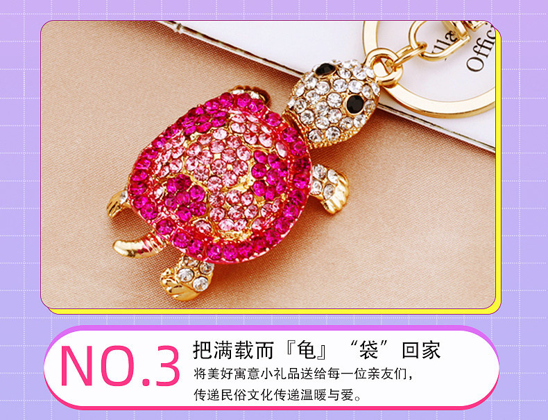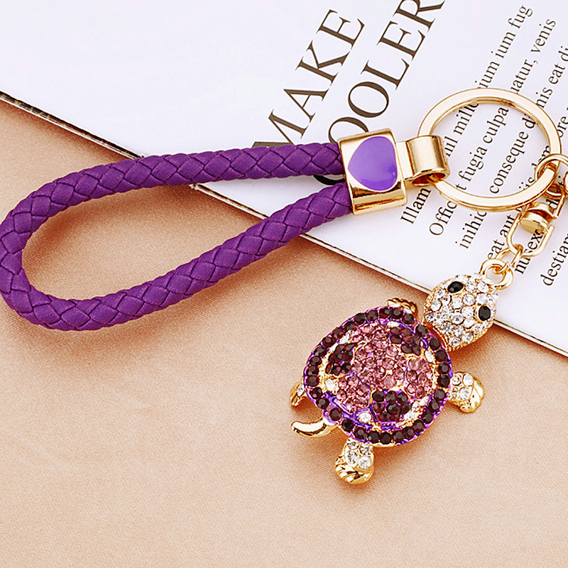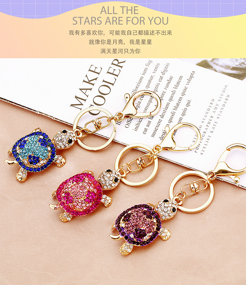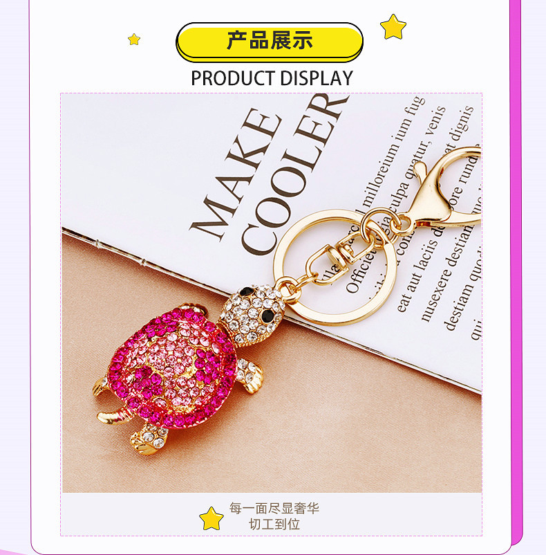 중국식 모조 다이아몬드 행운의 거북이 자동차 열쇠 고리 여성 가방 펜던트 금속 열쇠 고리 비즈니스 선물 도매