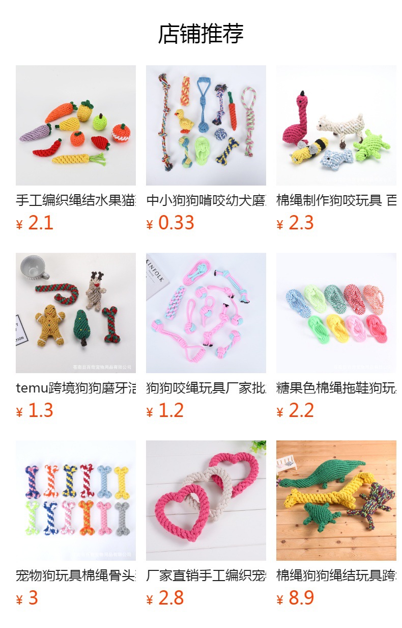손으로 짠 면 로프 애완 동물 장난감 도매 개 치아 청소 개 장난감 공장 직접 판매