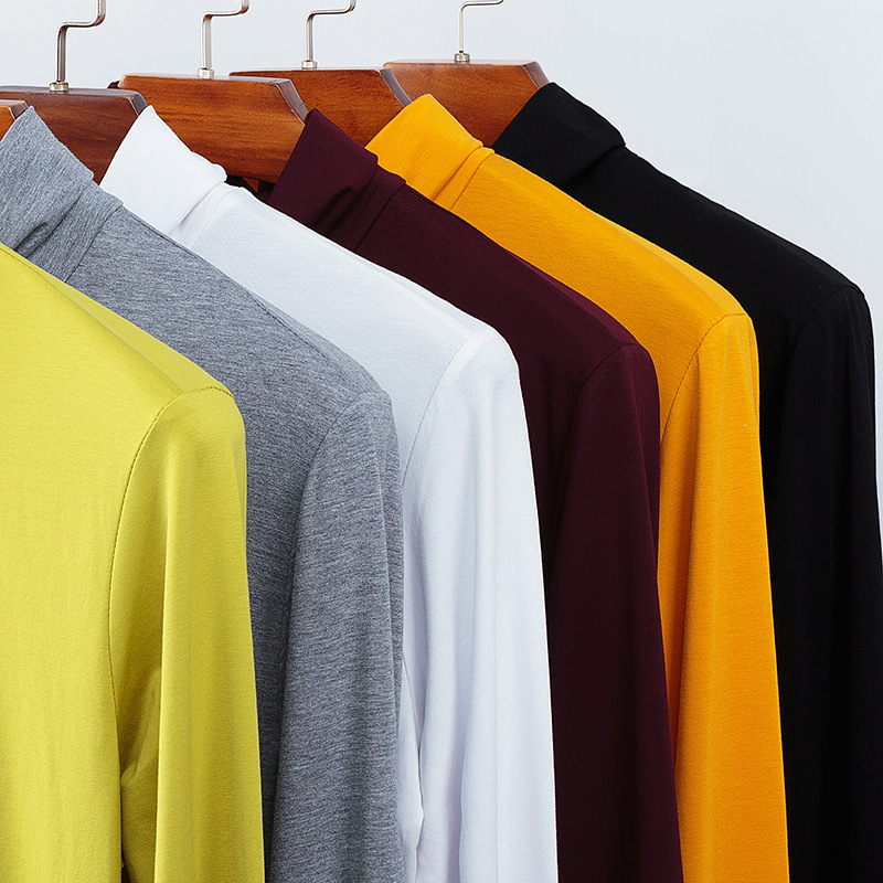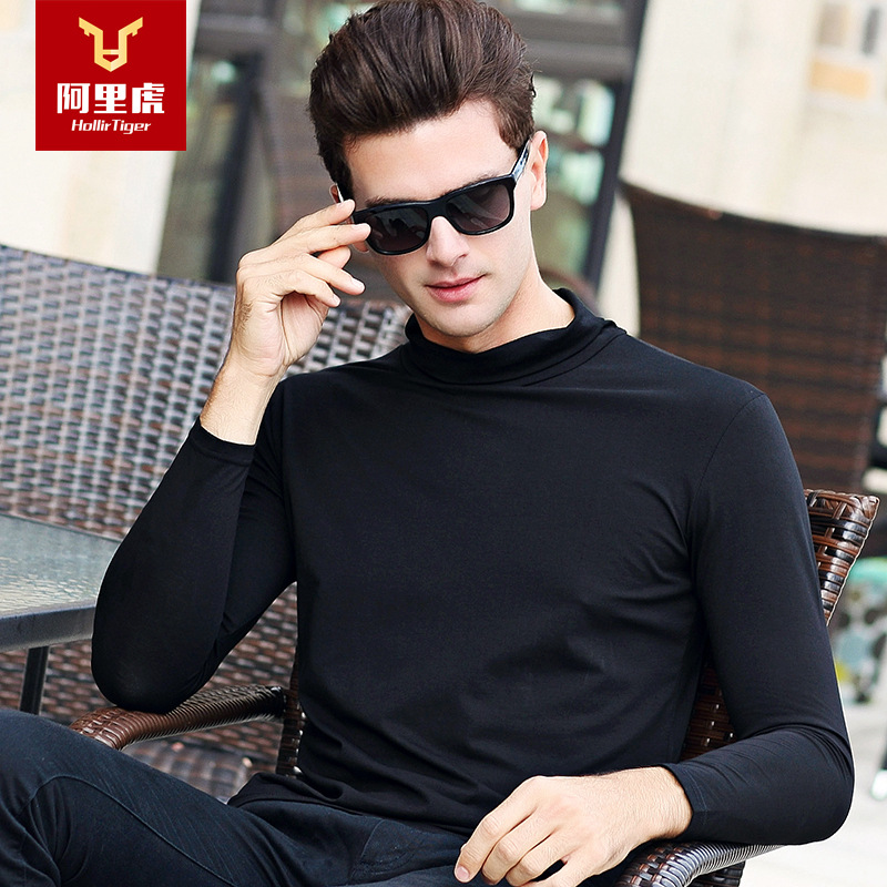 순면 신축성 있는 라이브 방송용 의류 도매 재고 정리 긴팔 하이넥 남성 티셔츠 통기성