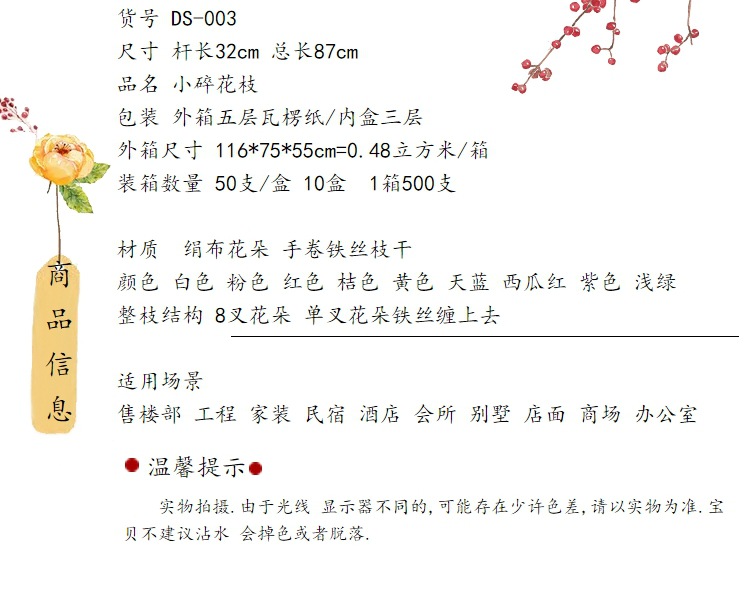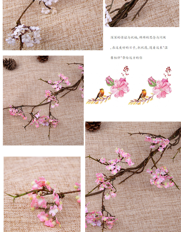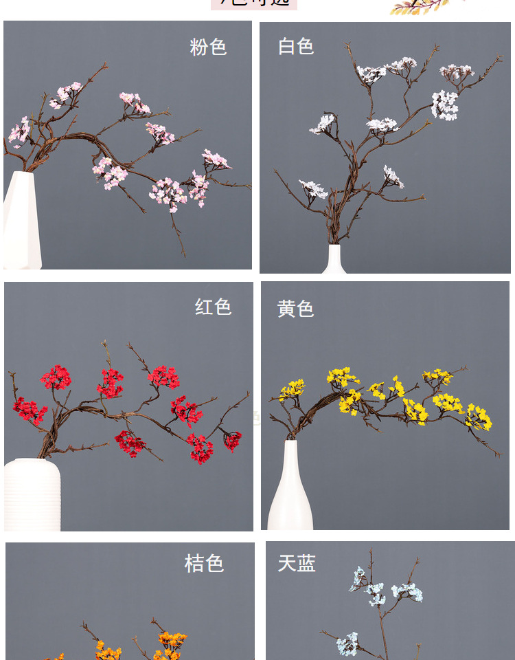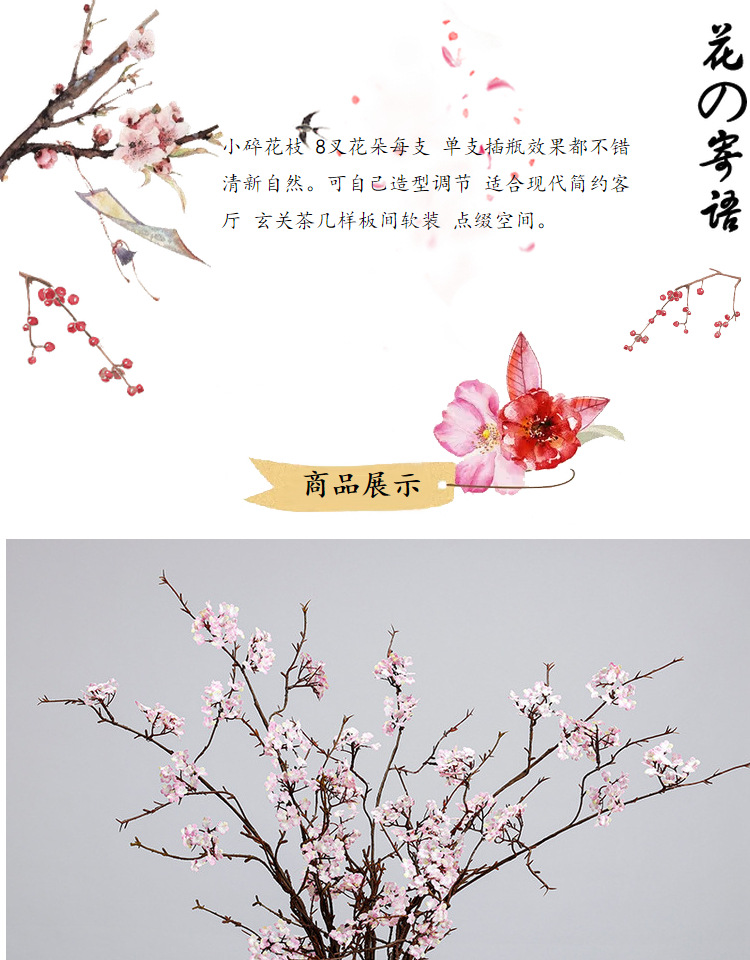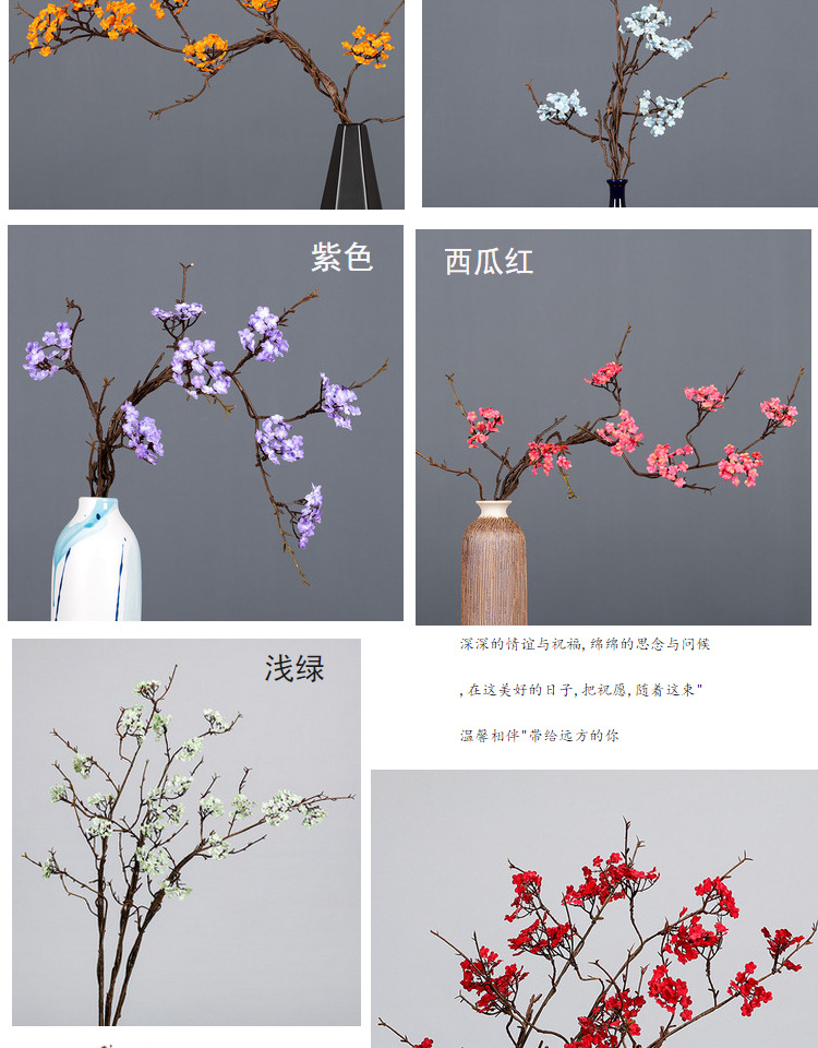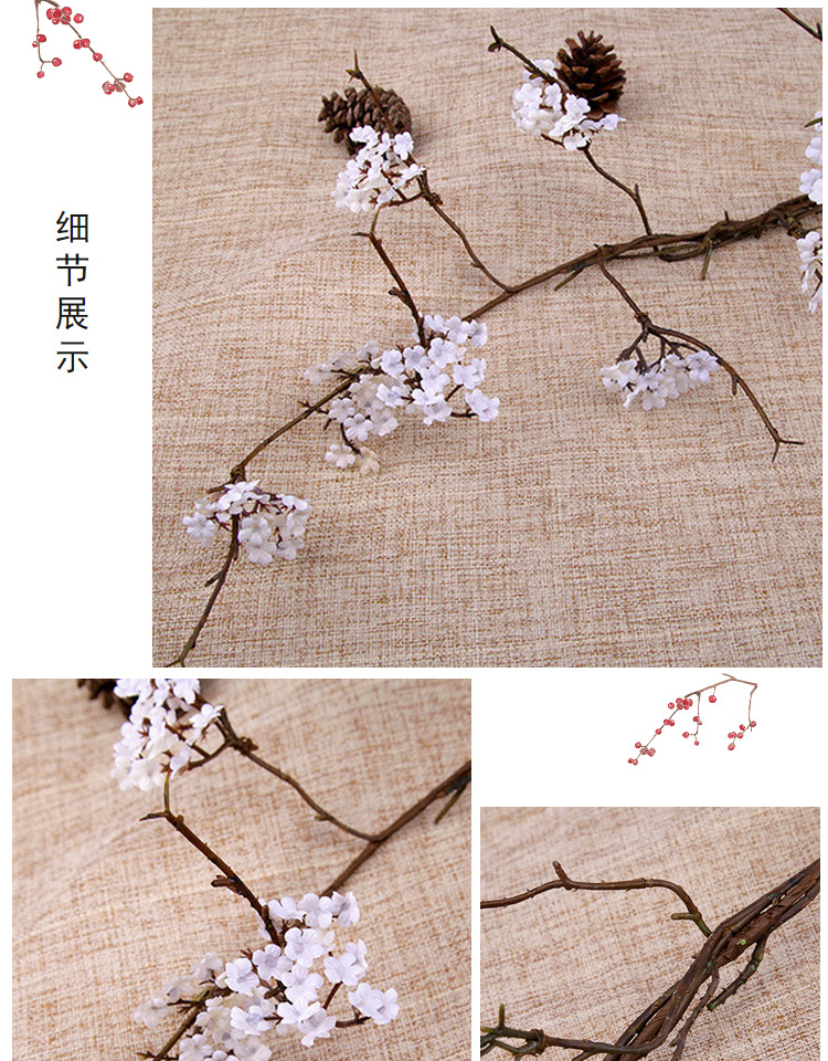 선 시뮬레이션 벚꽃 등나무 가지 홈 인테리어 작은 꽃 마른 가지 티 룸 가짜 꽃 장식품 간단한 꽃꽂이 소품