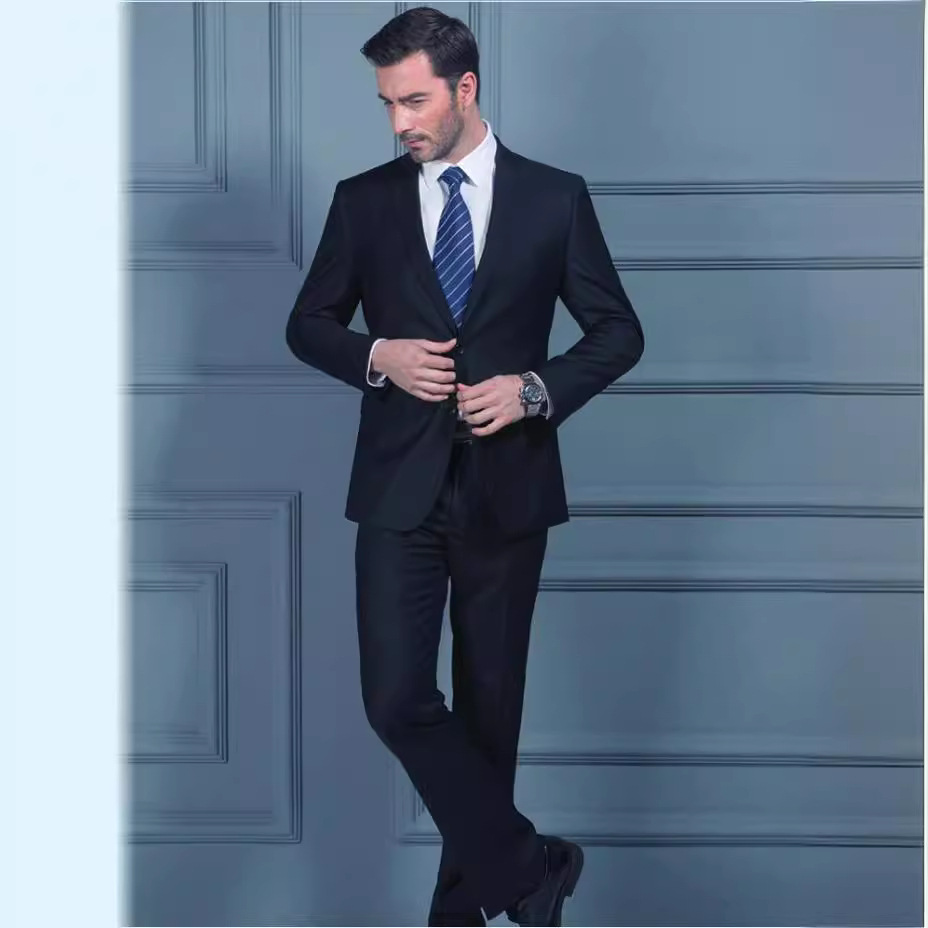 남자의 로얄 블루 세트 세트 비즈니스 웨어 네이비 세트 재킷 원피스 봄과 가을 남자와 여자의 은행