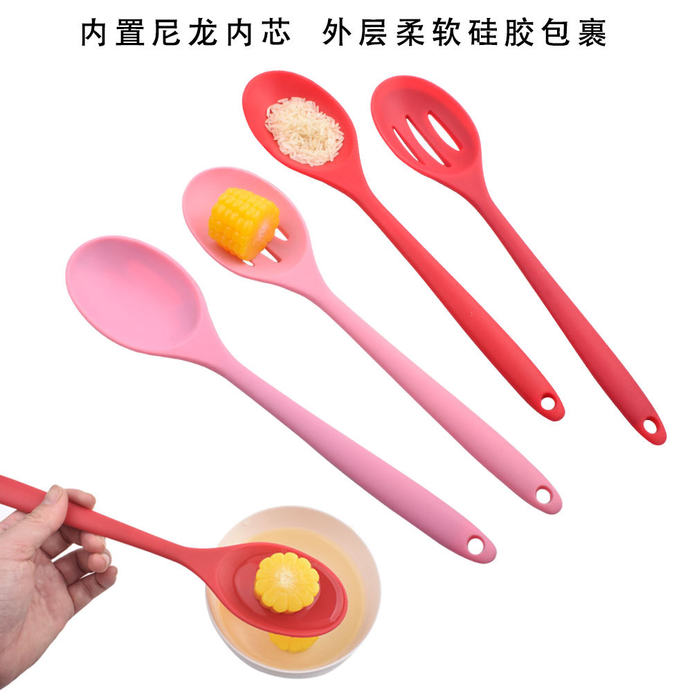 일체형 올인원 손잡이 실리콘 수프 스푼, 부드러운 팁 수프 스푼, 실리콘 주방용품, 논스틱 팬용 수프 스푼