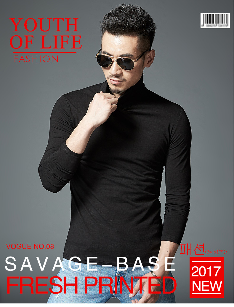 봄 하이 칼라 엑스트라 롱 남성 긴팔 티셔츠 퓨어 코튼 슬림 스탠드 칼라 남성 라이트 플레이트 티셔츠 겉옷 남성 의류