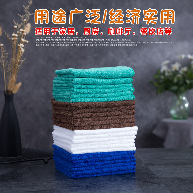 产品介绍:本产品材质为超细纤维,百分之八十的涤纶,百分之二十的锦纶,吸水性强,不掉毛。尺寸为:30厘米x30厘米。用途广泛/经济实用。可适用于家居,厨房,咖啡厅,奶茶店,餐饮店等。有白色,绿色,咖啡色,蓝色共4个颜色可选。
