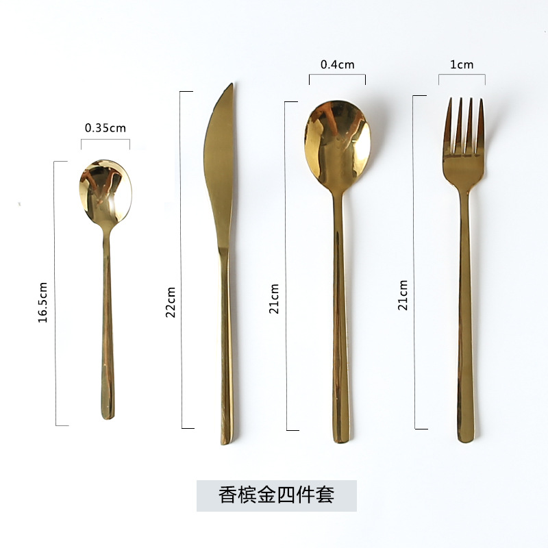 한국식 304 스테인레스 스틸 나이프와 포크 스푼 서양 식기 두꺼운 스테이크 나이프와 포크 컬러 디저트 도금 커피 스푼