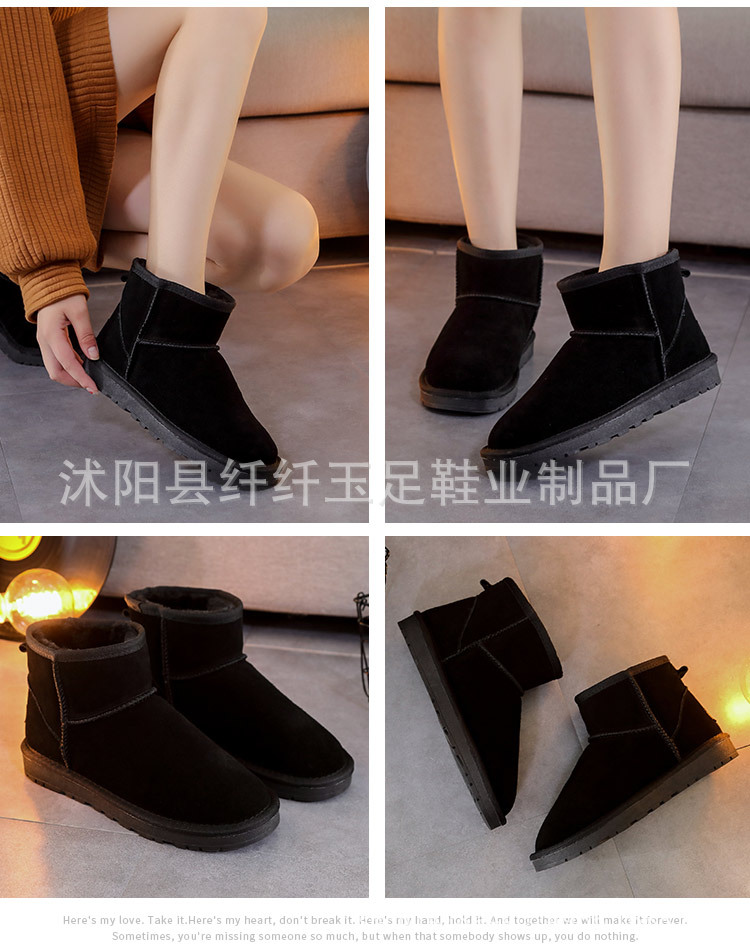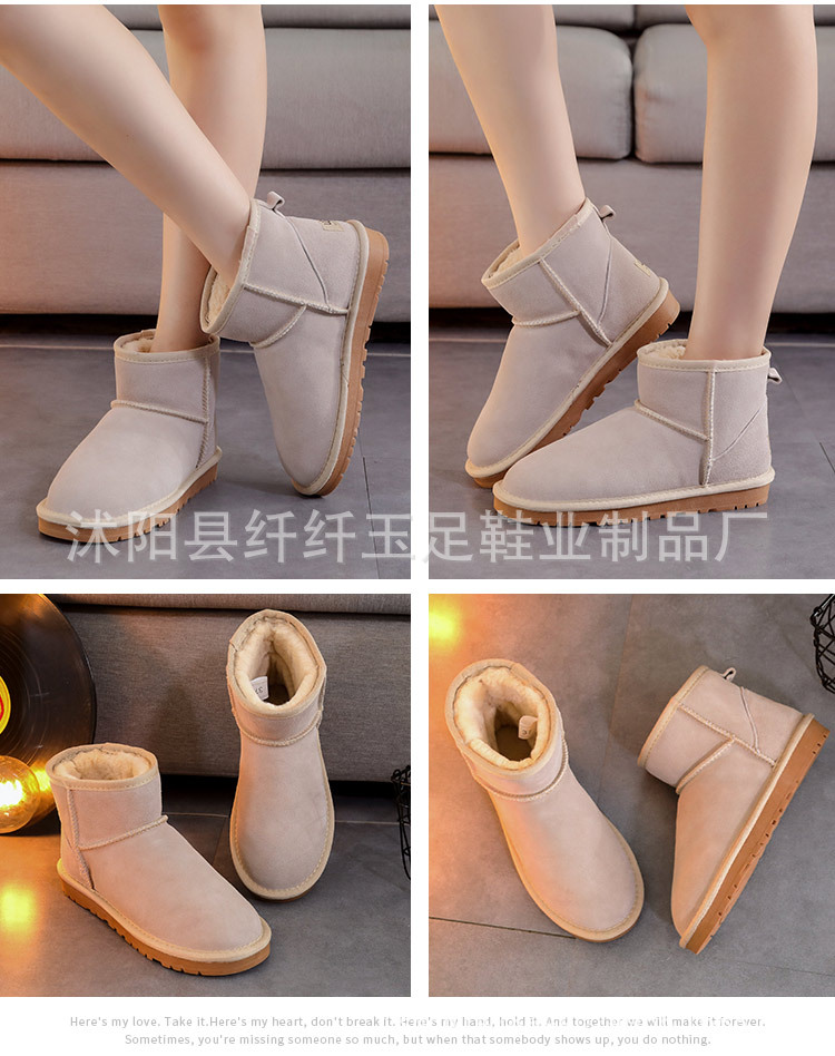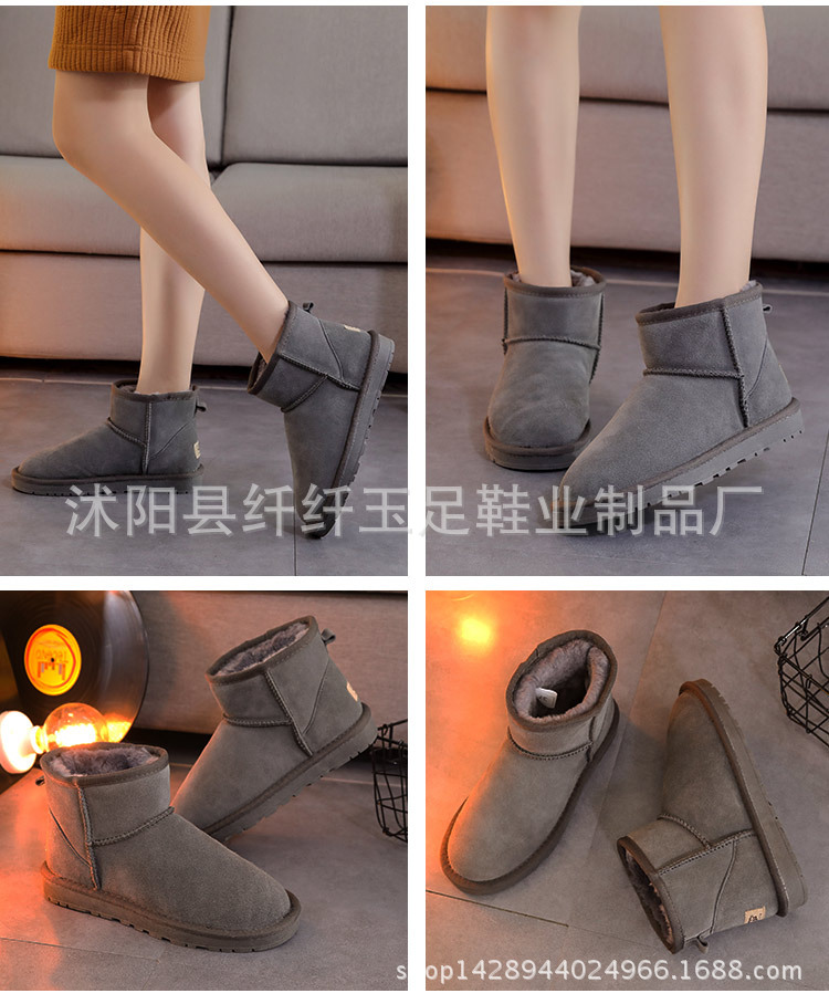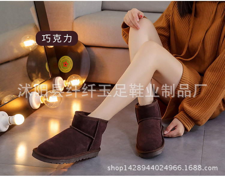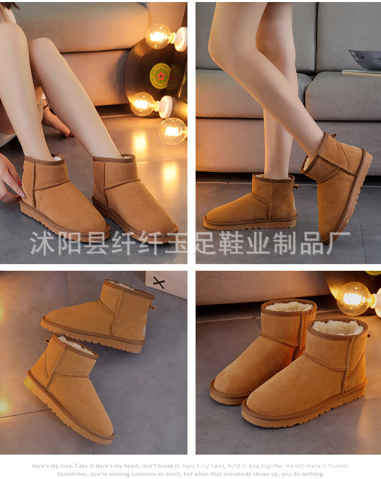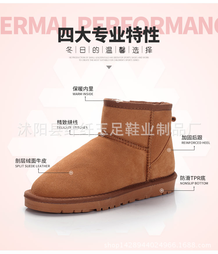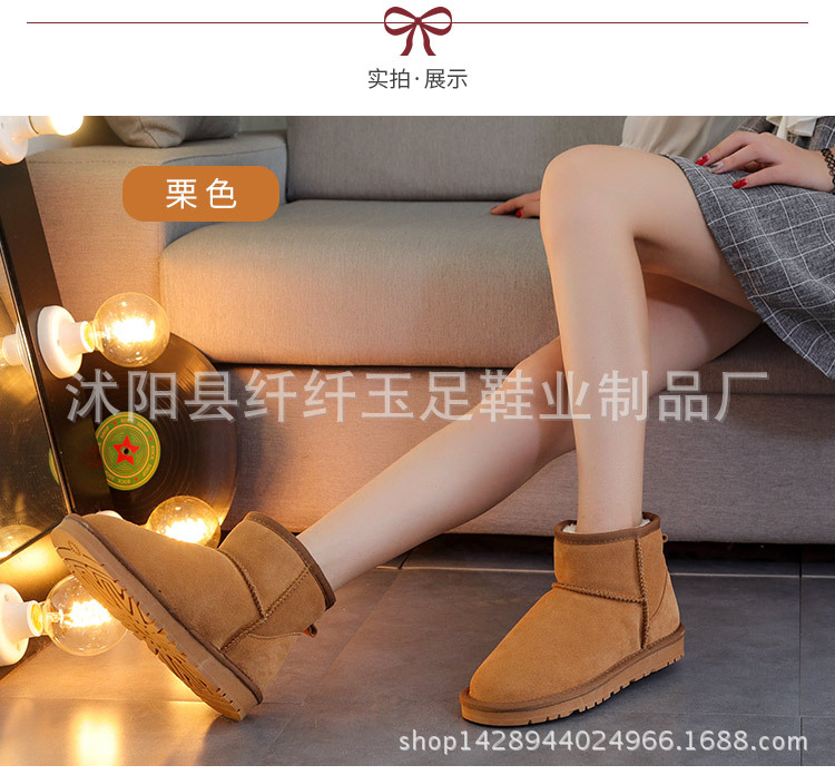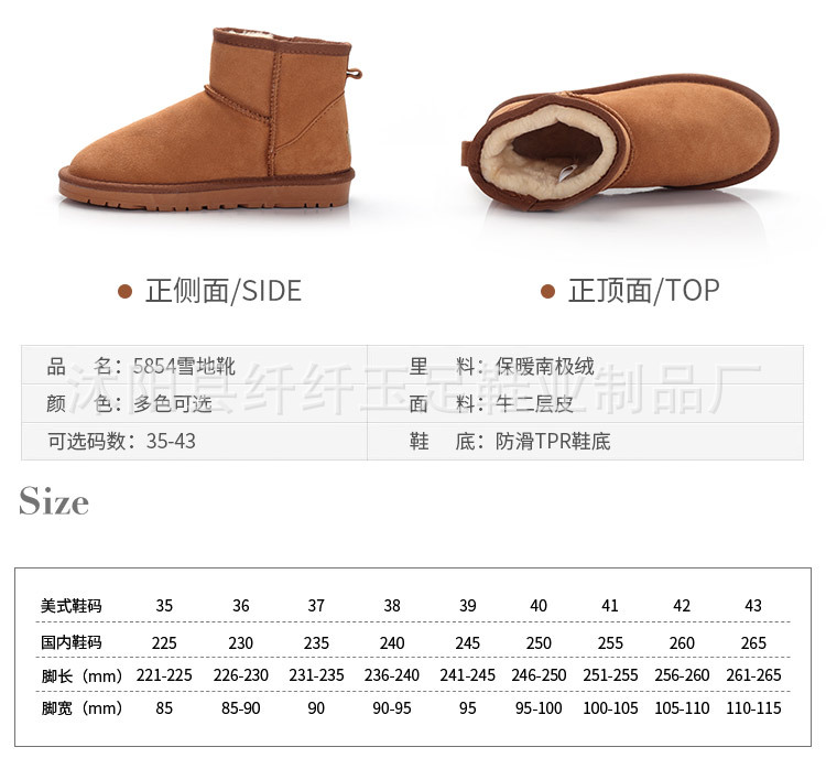 공장 직접 5854 짧은 튜브 스노우 부츠 플랫 두꺼운 플러스 사이즈 남성 신발 진짜 소가죽 해외 무역 여성 신발 도매