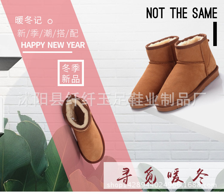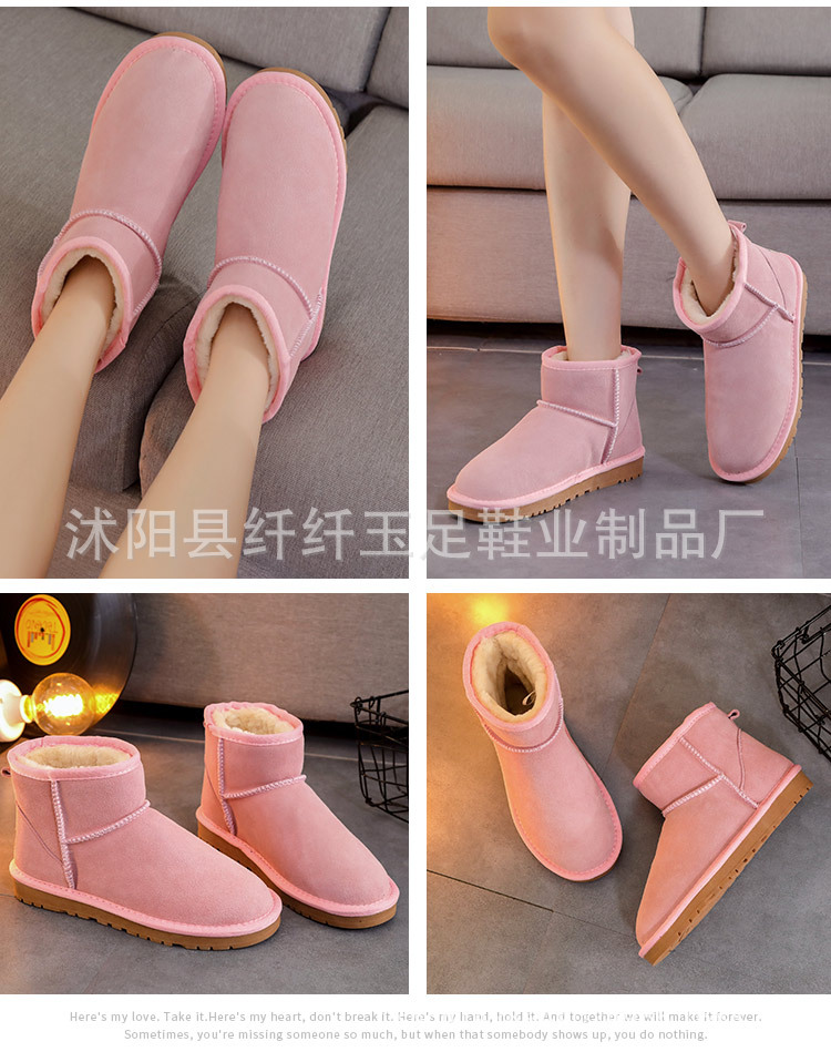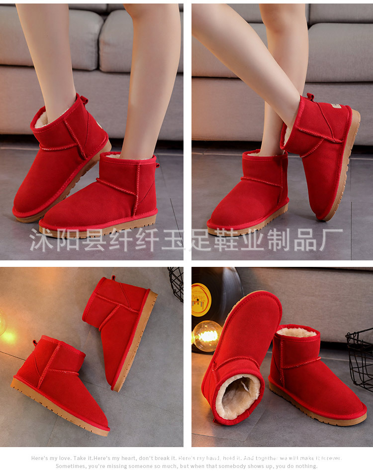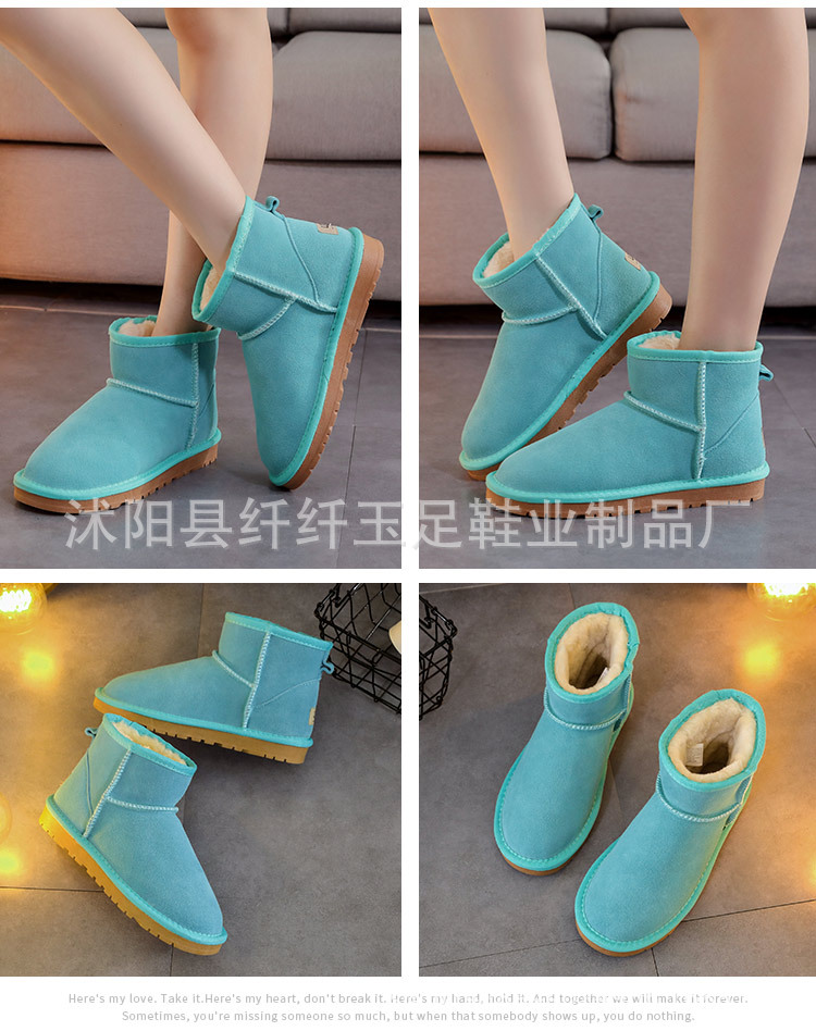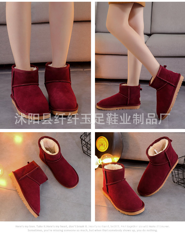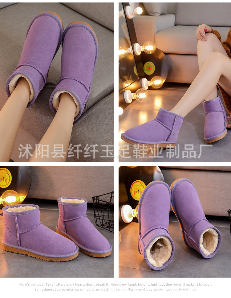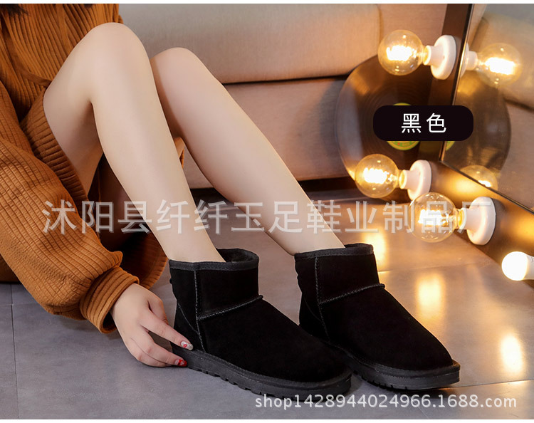 공장 직접 5854 짧은 튜브 스노우 부츠 플랫 두꺼운 플러스 사이즈 남성 신발 진짜 소가죽 해외 무역 여성 신발 도매