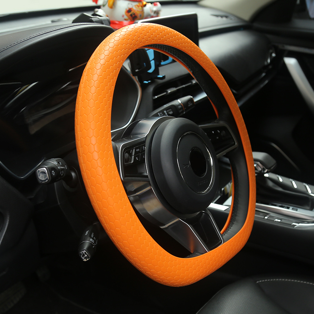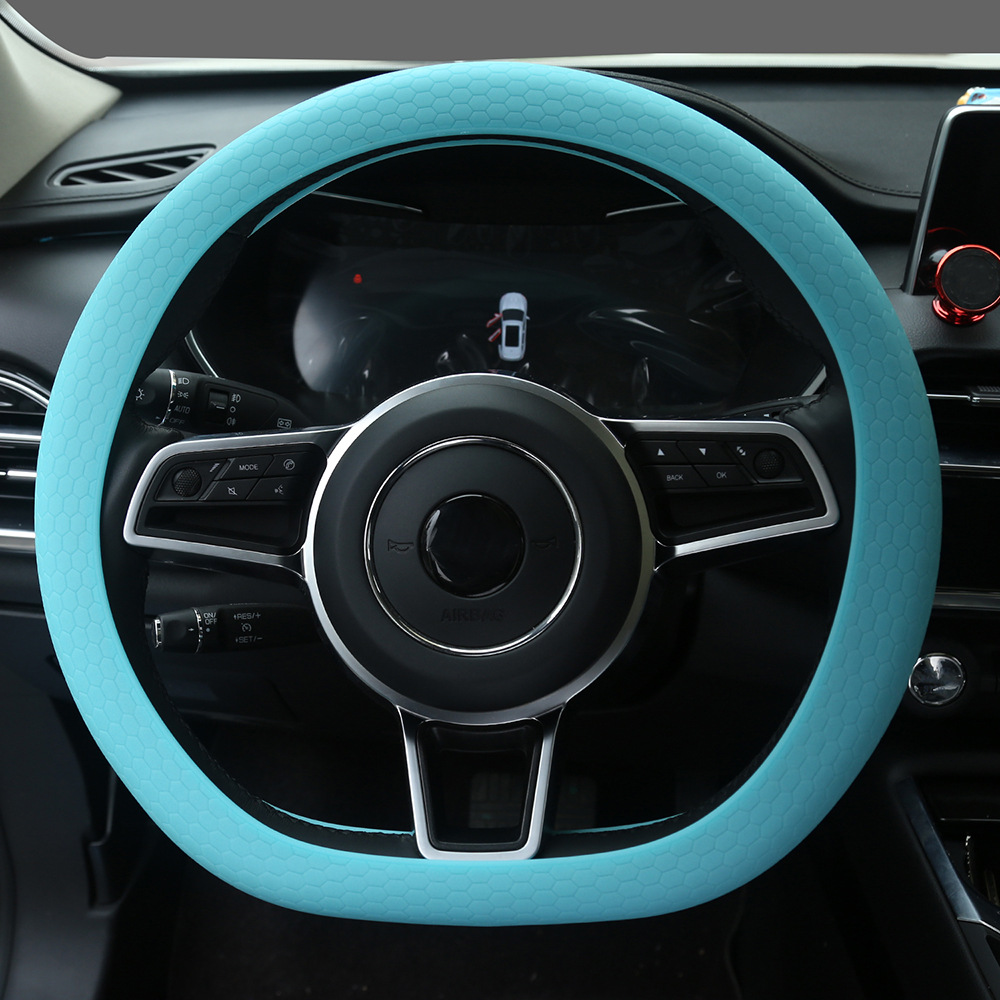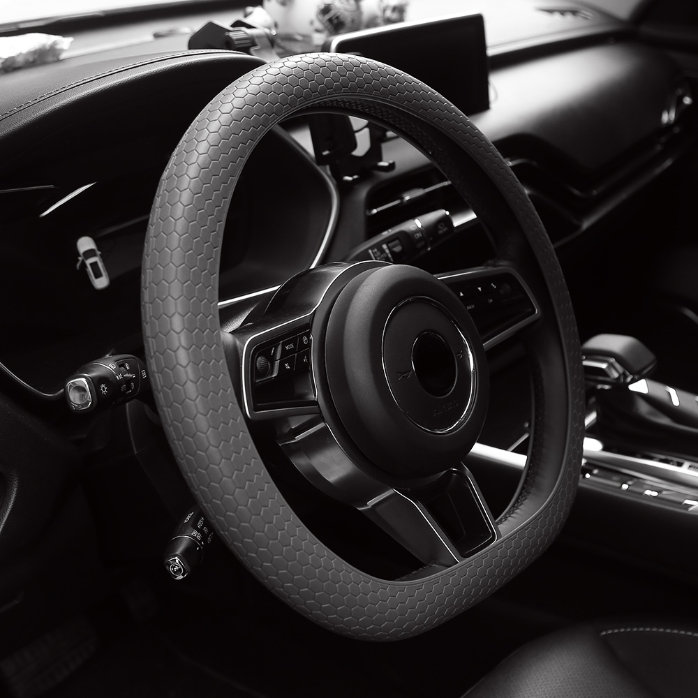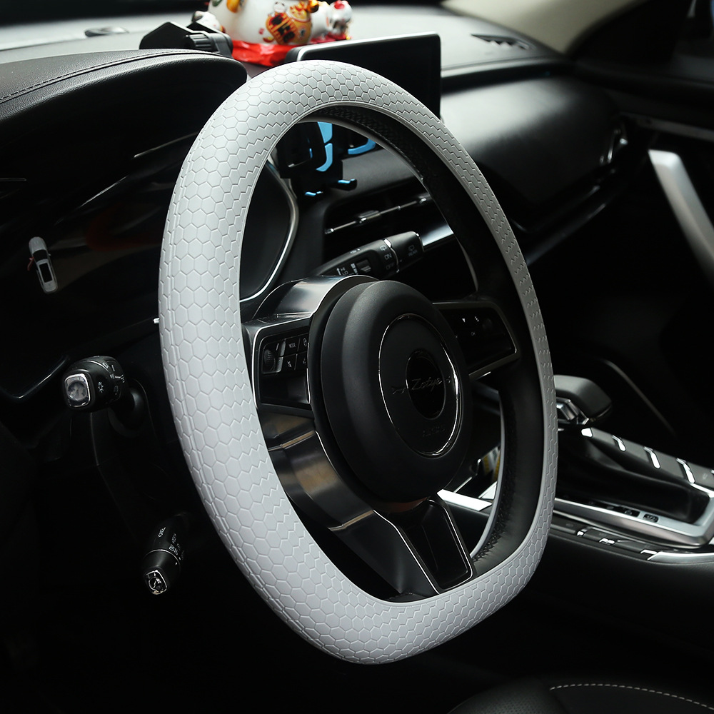 벌집 모양 실리콘 스티어링 휠 커버, 사계절 범용 핸들 커버, 회전판 커버, 자동차 다이아몬드 모양 인테리어, 미끄럼 방지 및 내마모성
