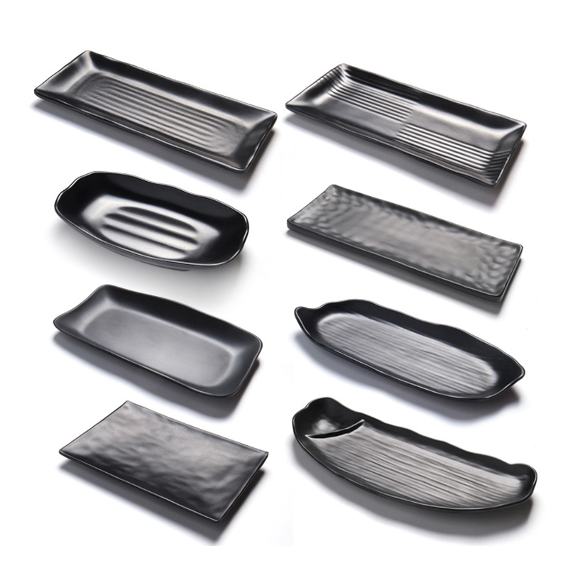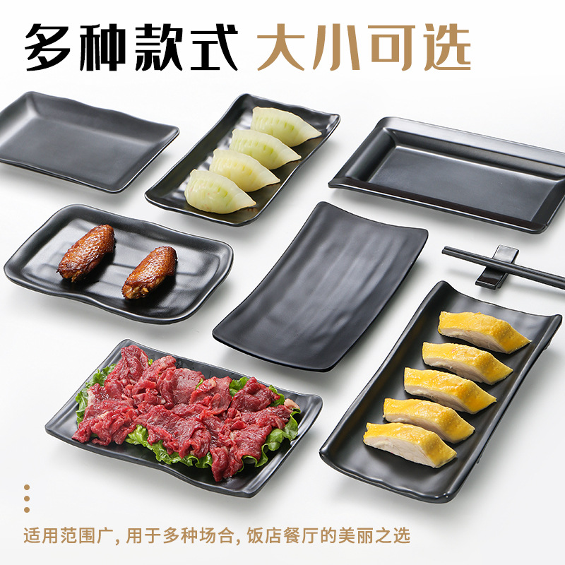 바베큐 레스토랑 특별 접시 직사각형 상업용 멜라민 플라스틱 검정색 창의적인 맞춤형 식기 모조 도자기 냄비 접시