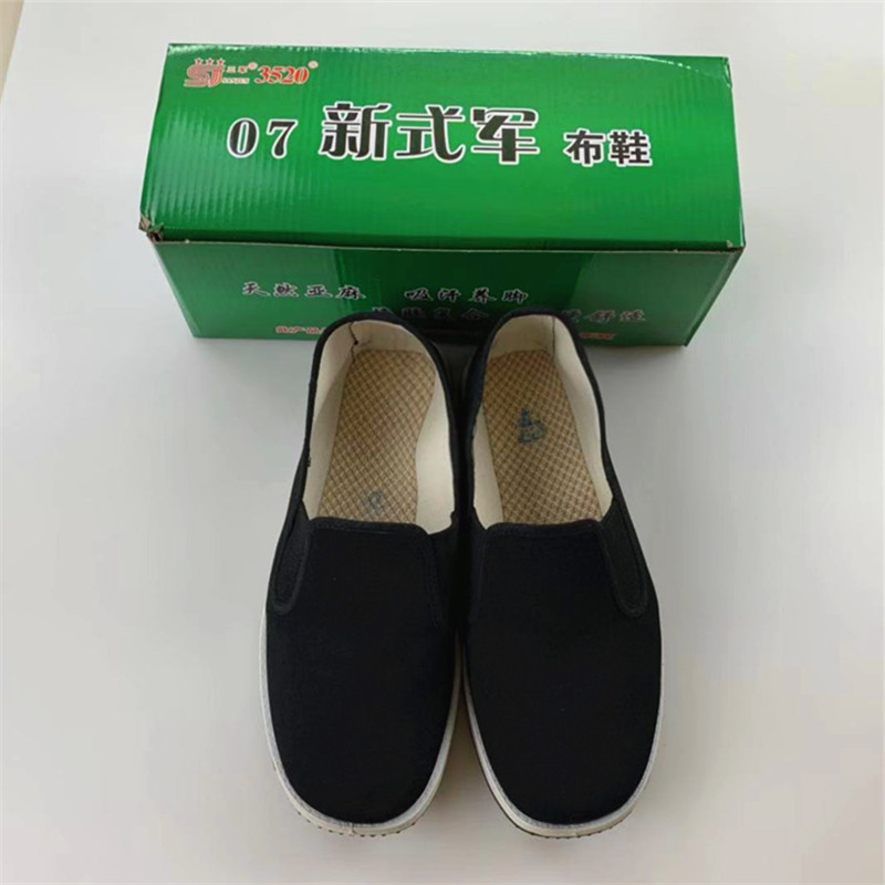 特点:3520新军布鞋,面布采用西服面料太子呢,里布采用加厚布,帮底用天然亚麻,接合三代橡塑发泡,鞋底天然橡胶,防滑耐磨,透气吸汗,柔软。本产品是人们喜爱的传统产品,具有穿着柔软、轻便、美观、透气 性好、养脚吸汗,胶底防滑耐磨,帮底结实牢固等特点。产品各地,深受广大消费者的喜爱。工厂坚持“质量可信,用户至上”的宗旨,对产品质量问题实 行三包。