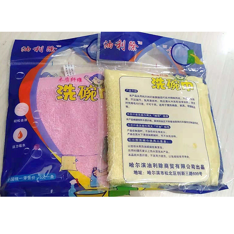 도매 오일 프리 식기 세척 타월 두꺼운 정품 목재 섬유 주방 행주 오일 프리 식기 세척 천 청소 수세미