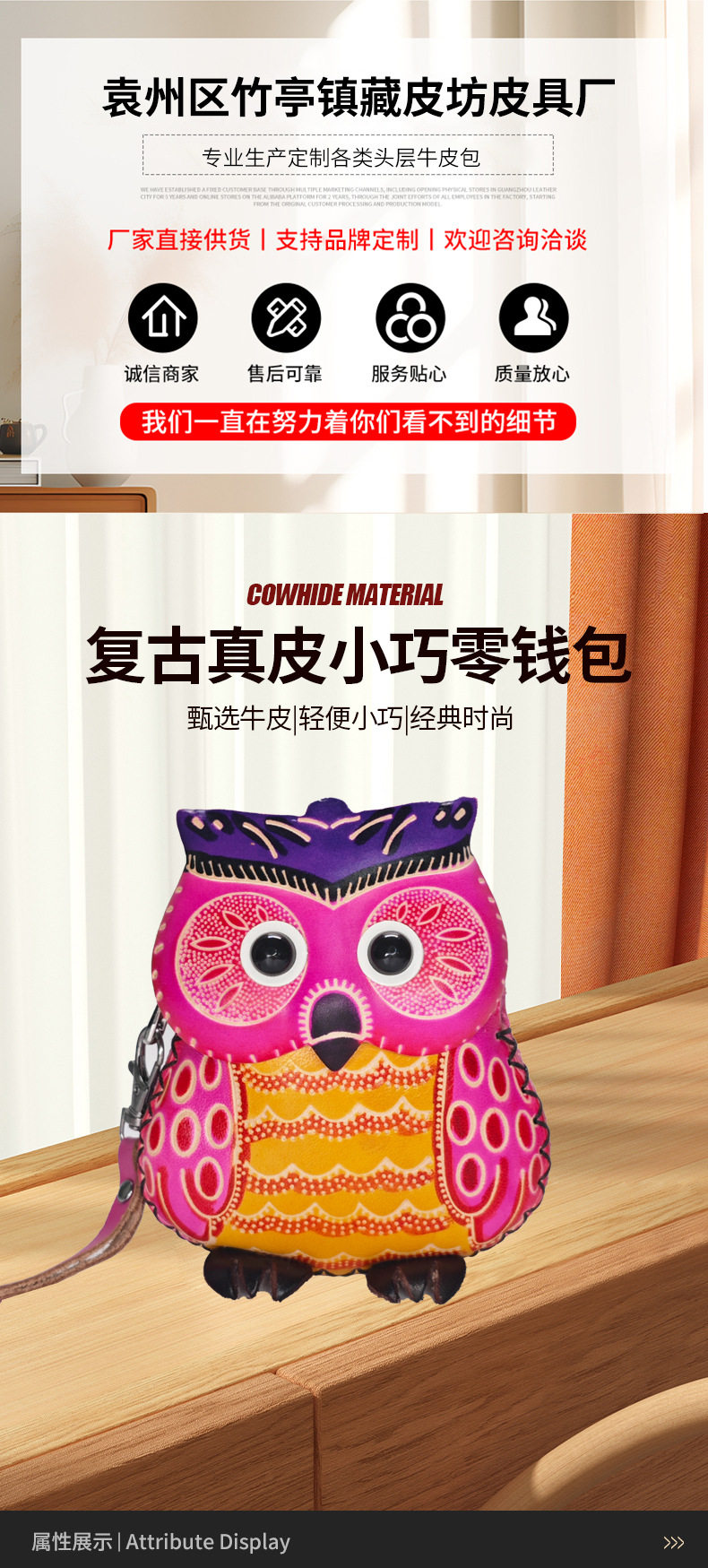 국경을 넘는 수제 소가죽 올빼미 동전 지갑, 개성 있고 귀여운 동물 여행 기념품, 만화 도매 수납