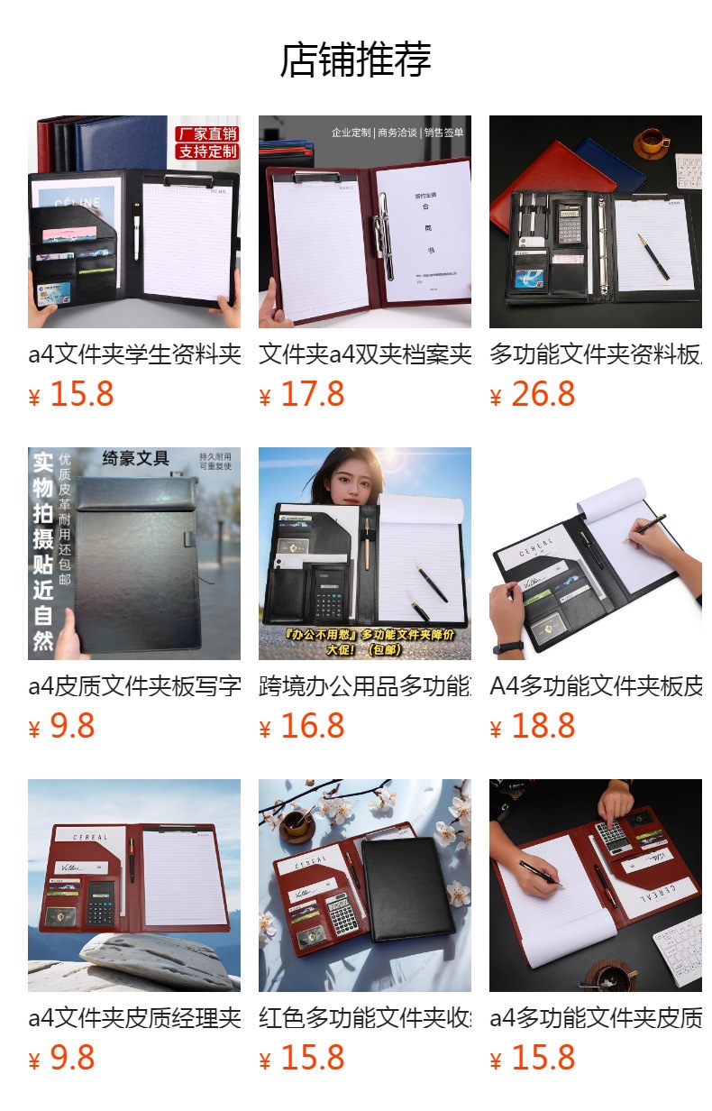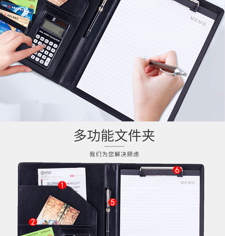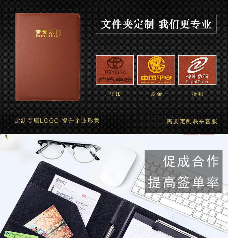 a4文件夹皮质经理夹多功能文件夾a4合同专用夹办公用品跨境专用定