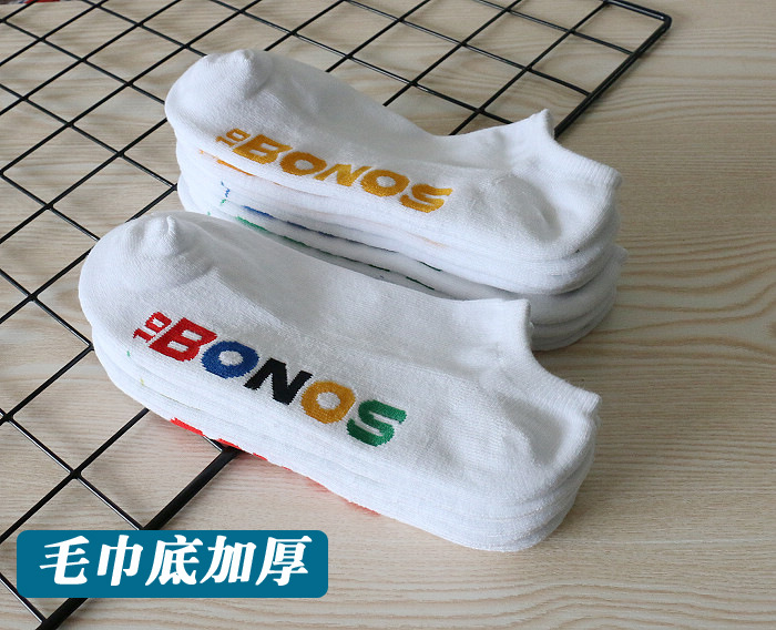 패션 BONOS 폴라 레터 양말 캐주얼 스포츠 양말 수건 바닥 두꺼운 남성 보트 양말 낮은 탑 얕은 탑 양말